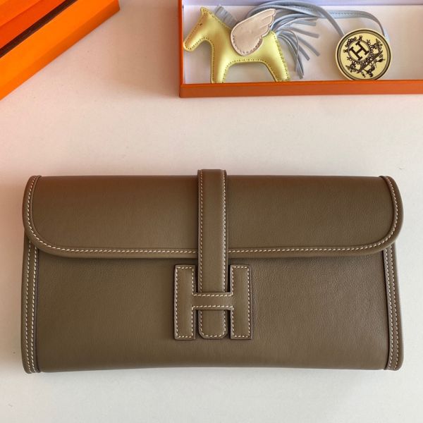 Hermes Jige Elan 29 Clutch Bag In Taupe Swift Calfskin