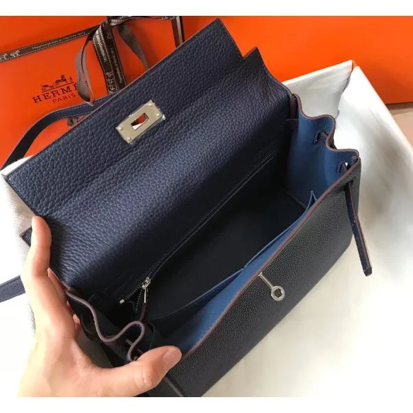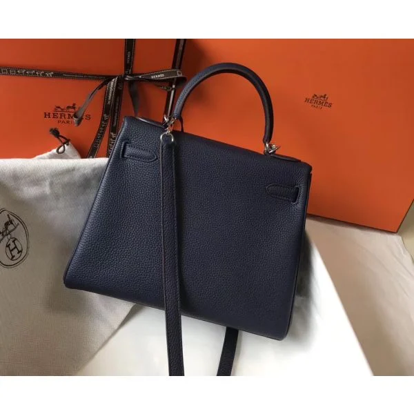 Hermes Kelly 28cm Bag In Dark Blue Clemence Leather PHW