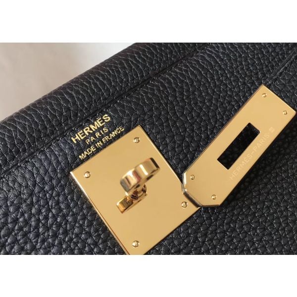 Hermes Kelly 32cm Bag In Black Clemence Leather GHW