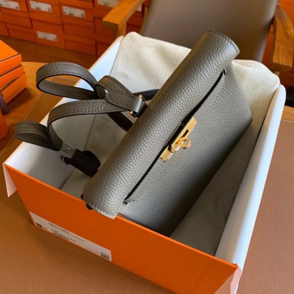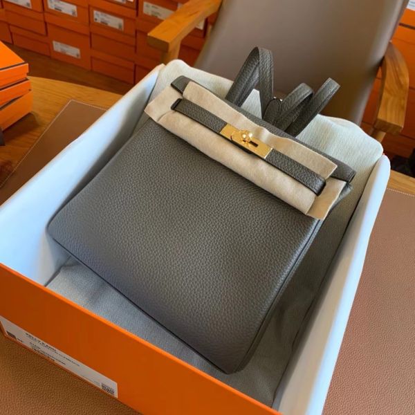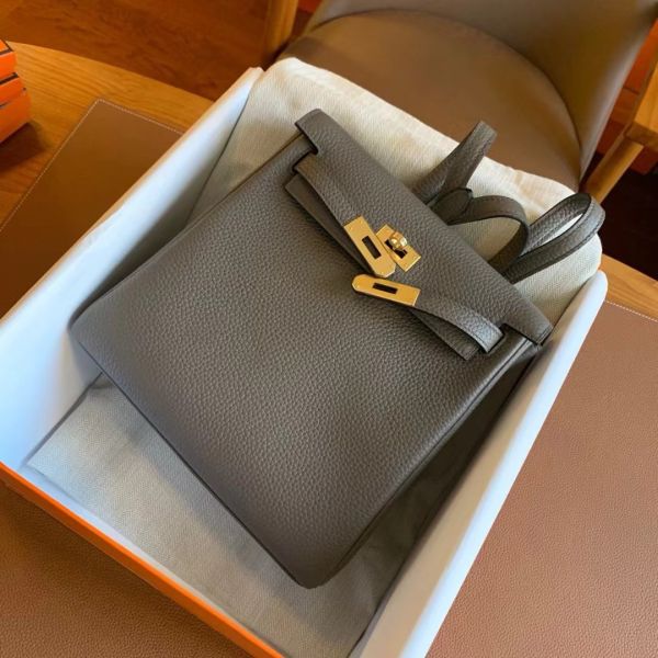 Hermes Kelly Ado Backpack in Etain Clemence Leather