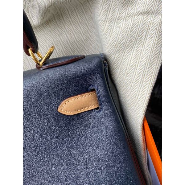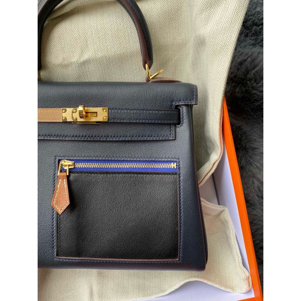 Hermes Kelly Colormatic 25 Handmade Bag in Blue Nuit Swift Leather