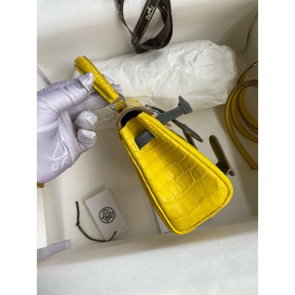 Hermes Kelly Doll Bag in Jaune Ambre Matte Alligator Leather