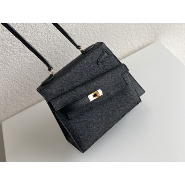 Hermes Kelly En Desordre 20 Handmade Bag In Black Epsom Calfskin