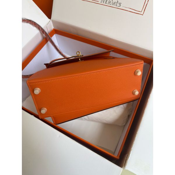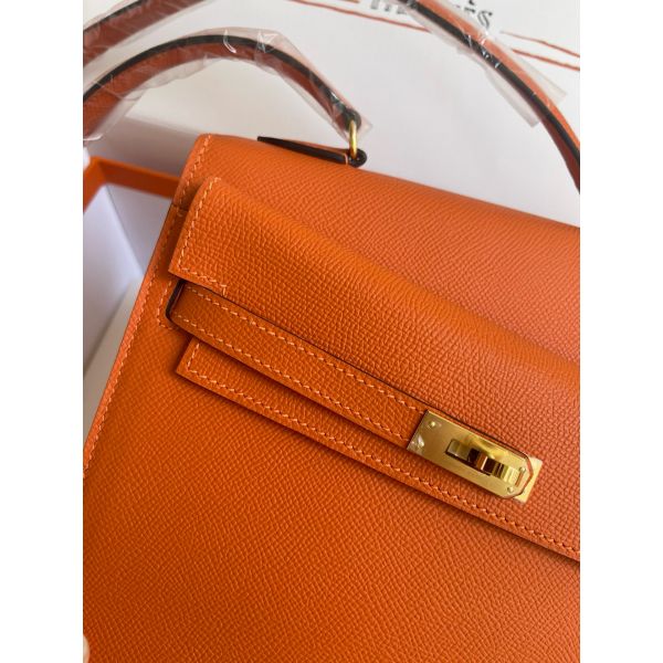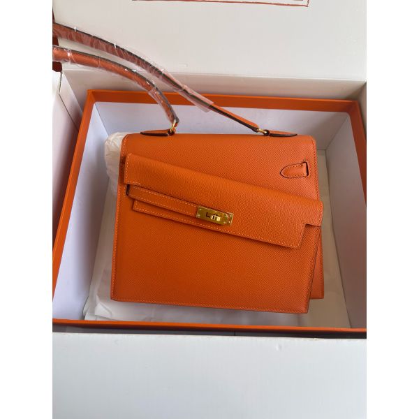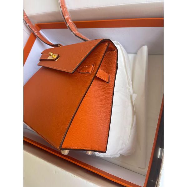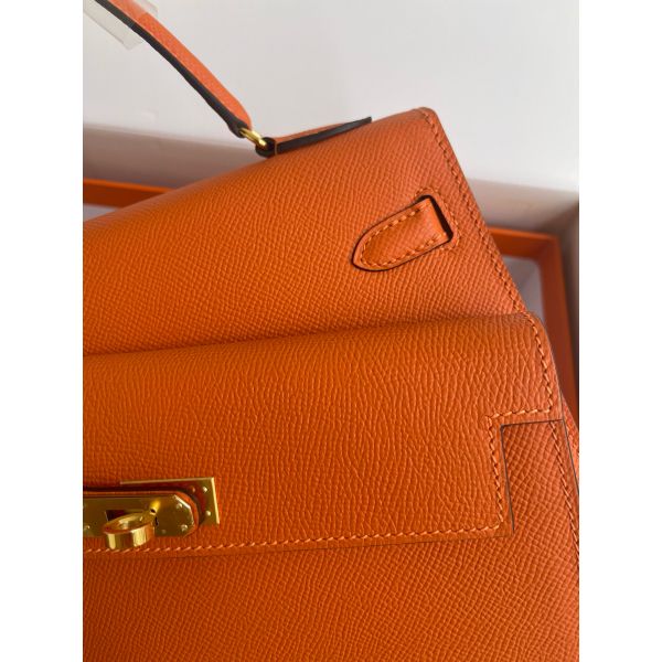 Hermes Kelly En Desordre 20 Handmade Bag in Orange Epsom Calfskin