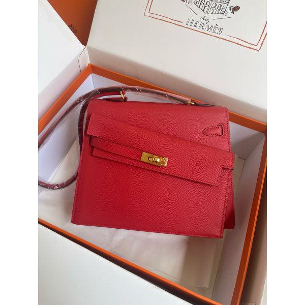 Hermes Kelly En Desordre 20 Handmade Bag in Red Epsom Calfskin
