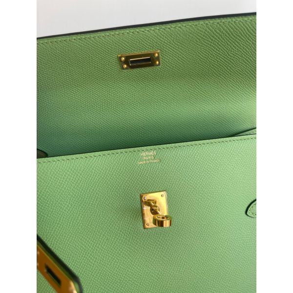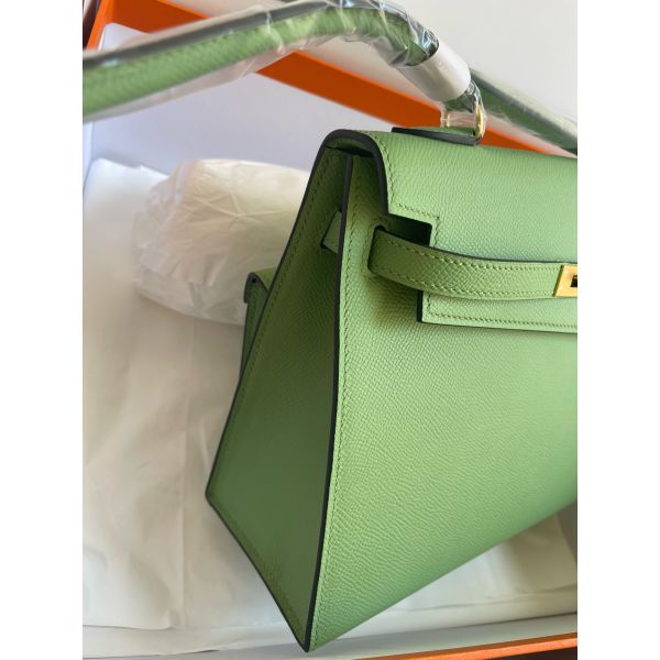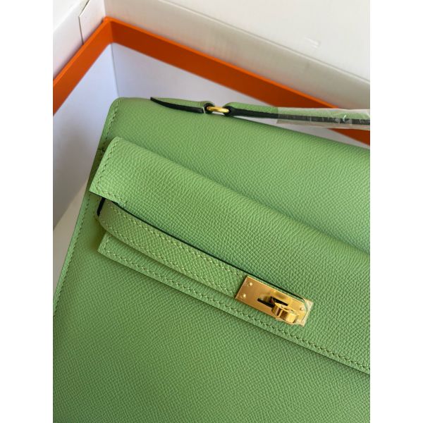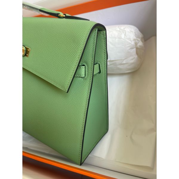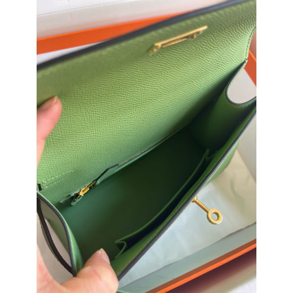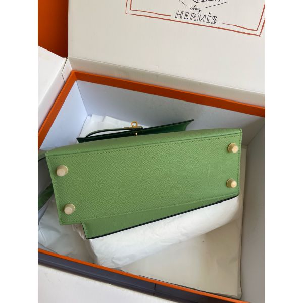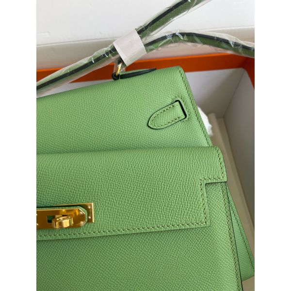 Hermes Kelly En Desordre 20 Handmade Bag in Vert Criquet Epsom Calfskin