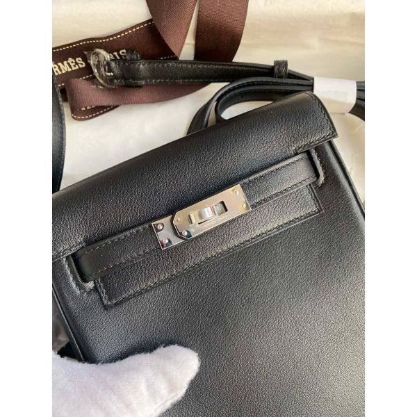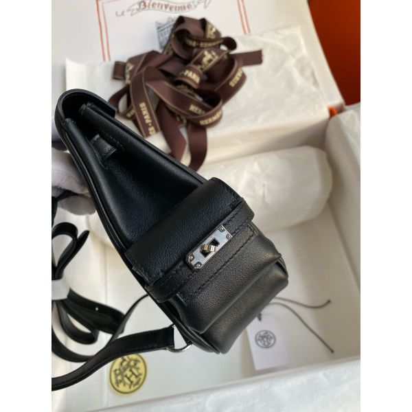 Hermes Kelly Jump Backpack in Black Swift Calfskin