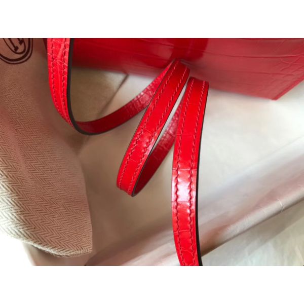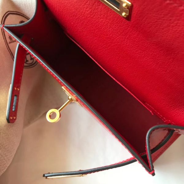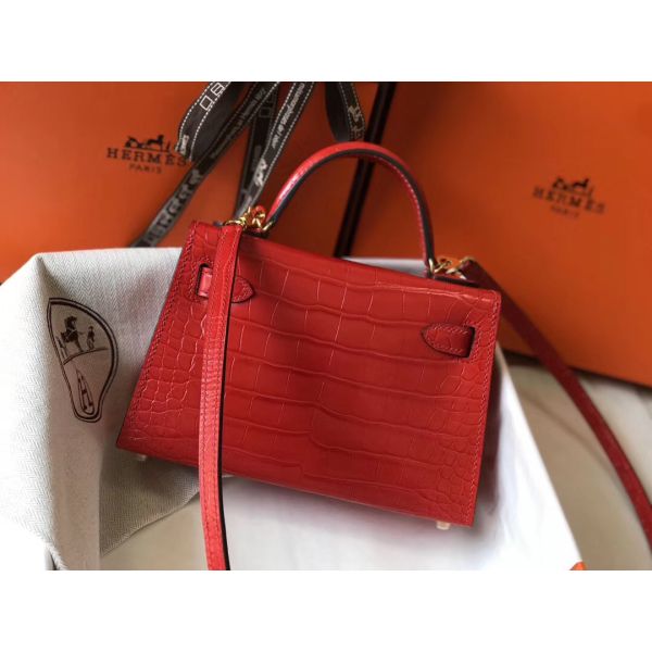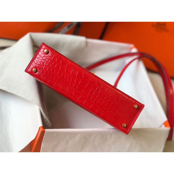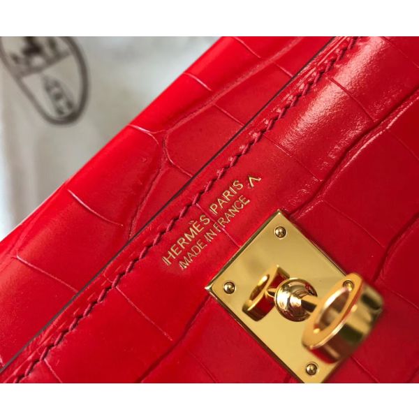 Hermes Kelly Mini II Handmade Bag In Red Crocodile Embossed Leather