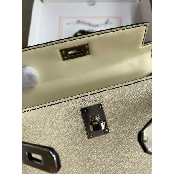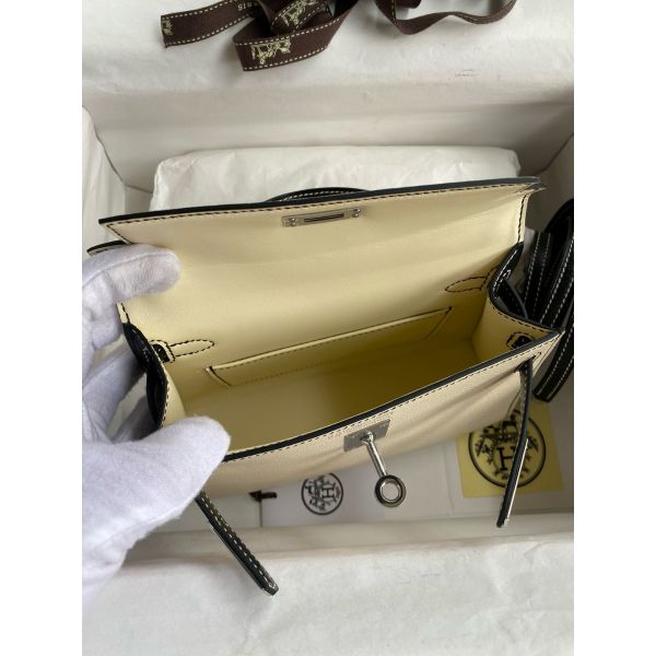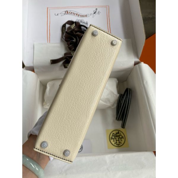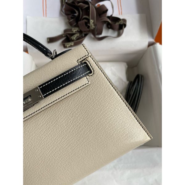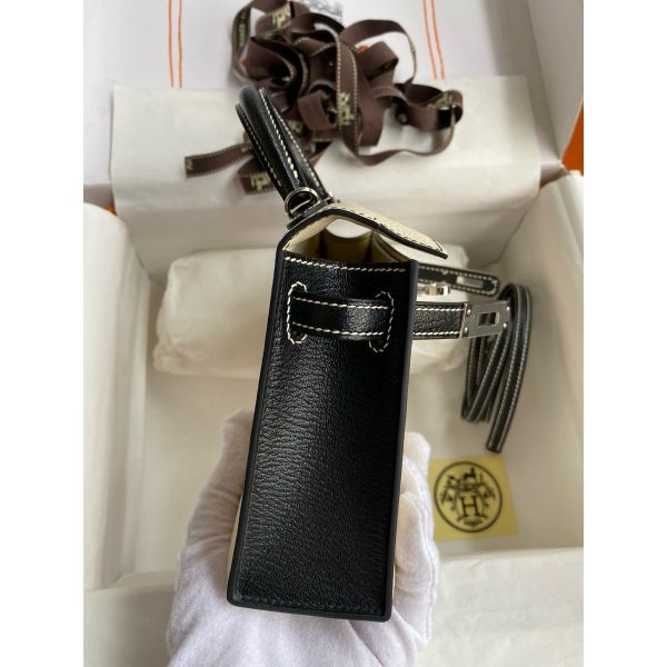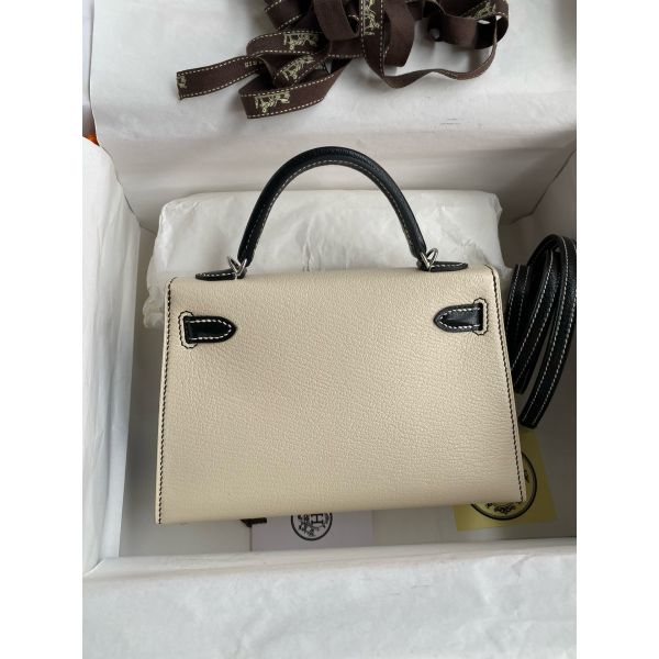 Hermes Kelly Mini II Sellier Bicolor Handmade Bag in Nata and Black Chevre Mysore Leather