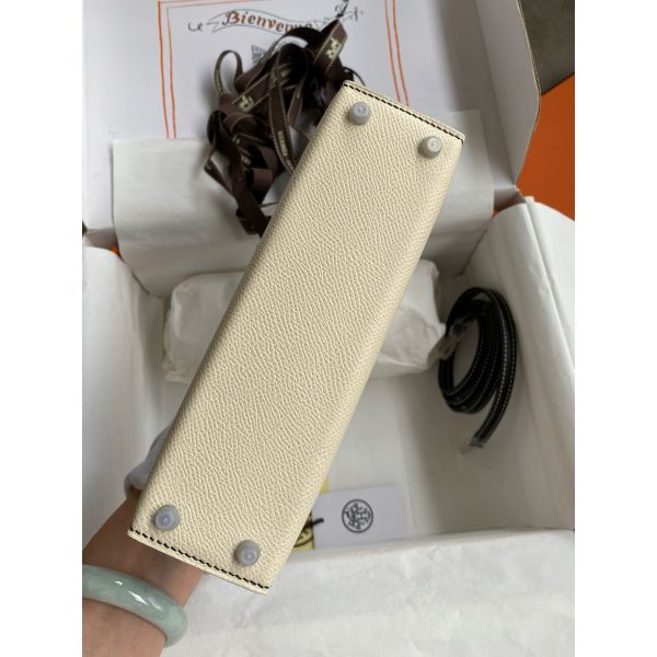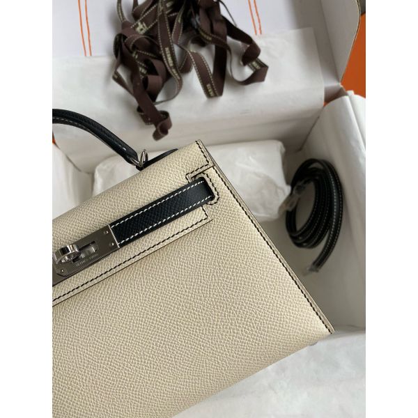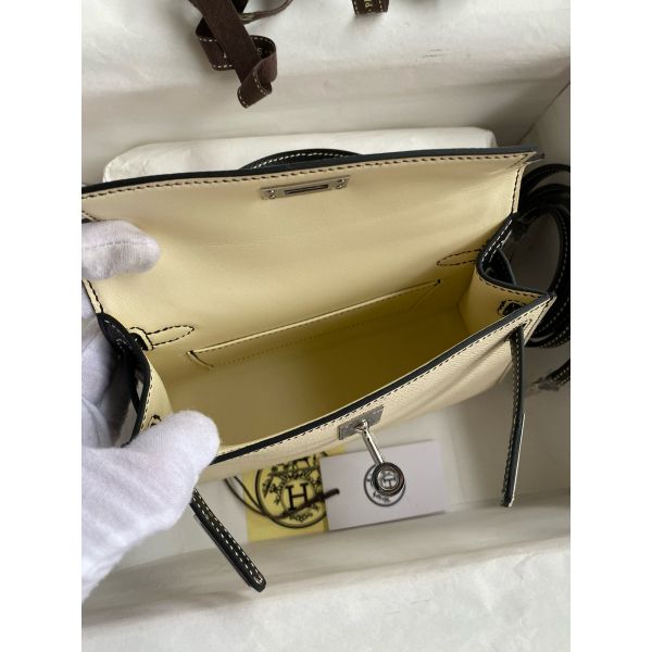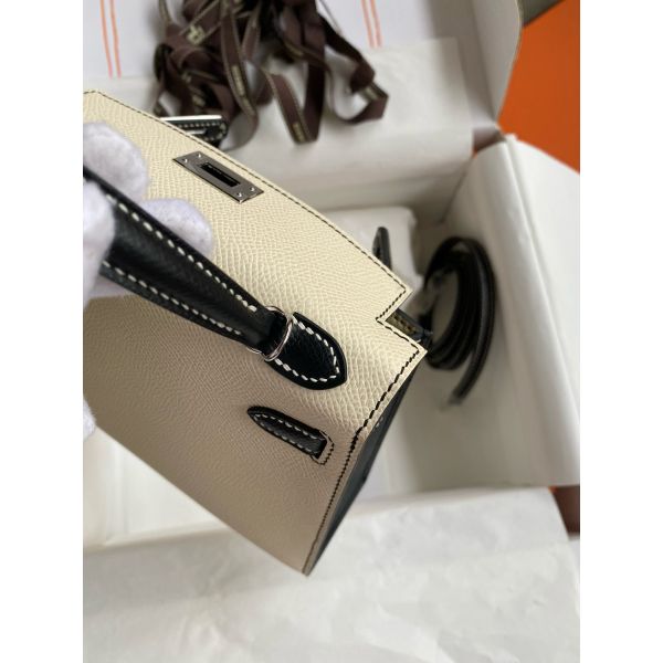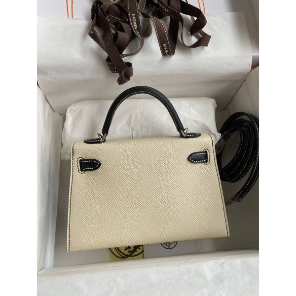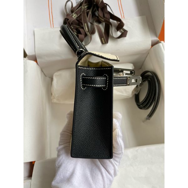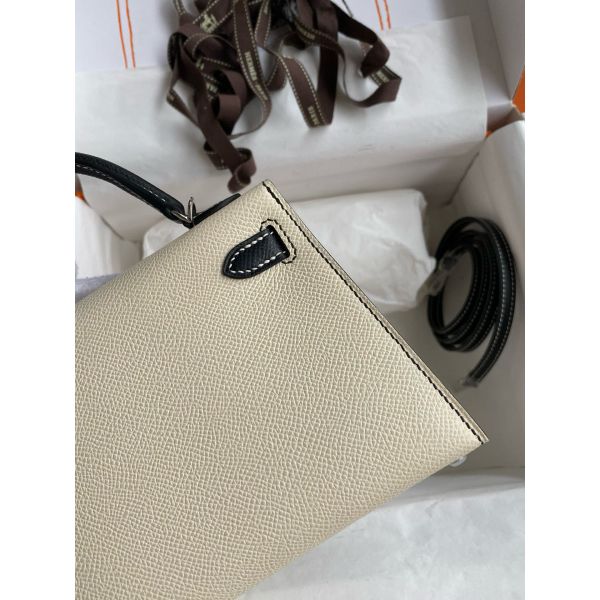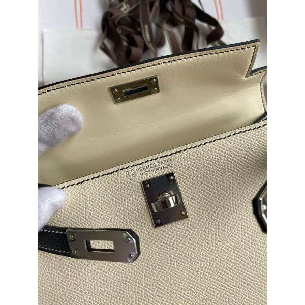 Hermes Kelly Mini II Sellier Bicolor Handmade Bag in Nata and Black Epsom Calfskin