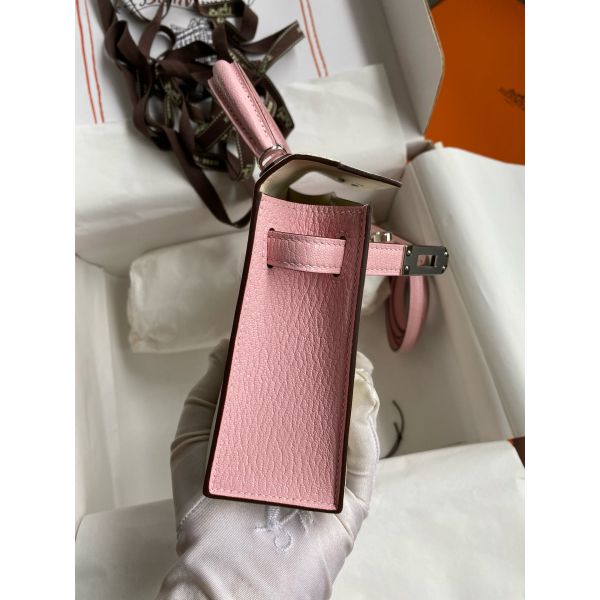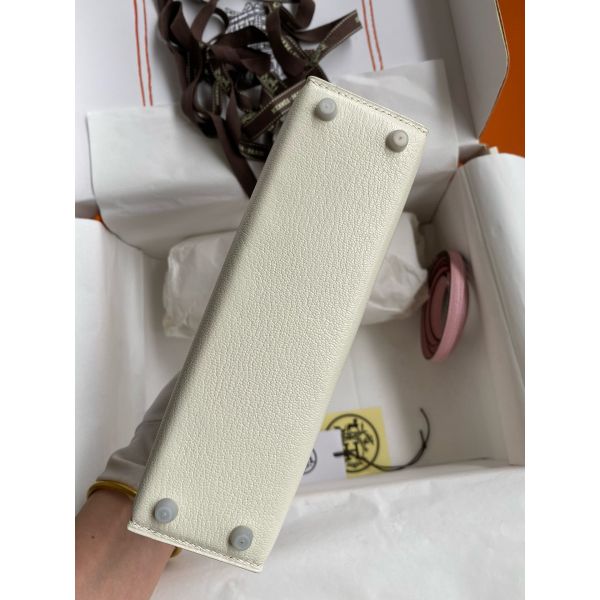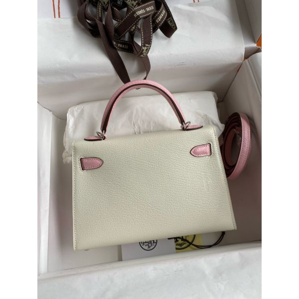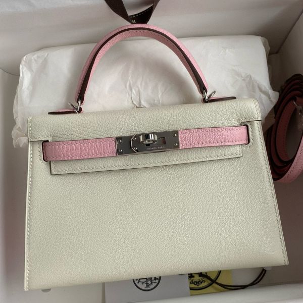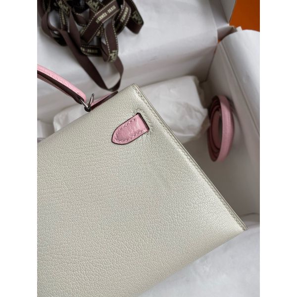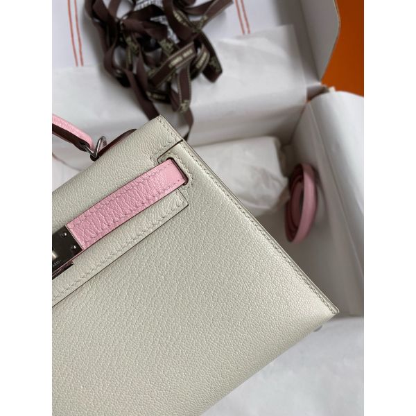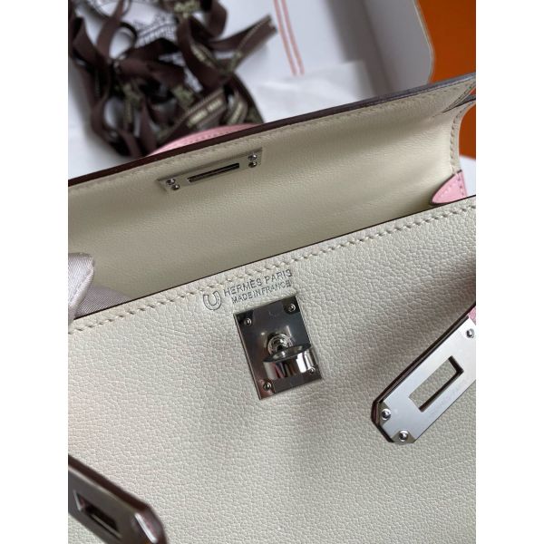 Hermes Kelly Mini II Sellier Bicolor Handmade Bag in Nata and Rose Sakura Chevre Mysore Leather