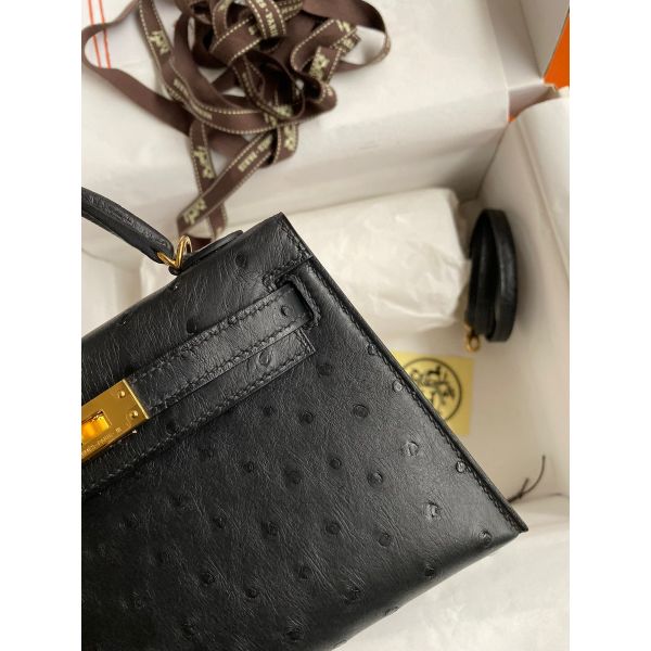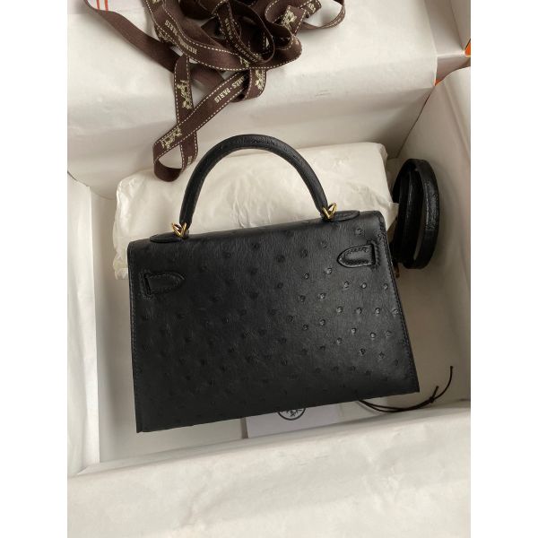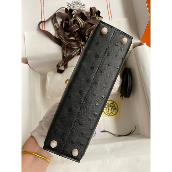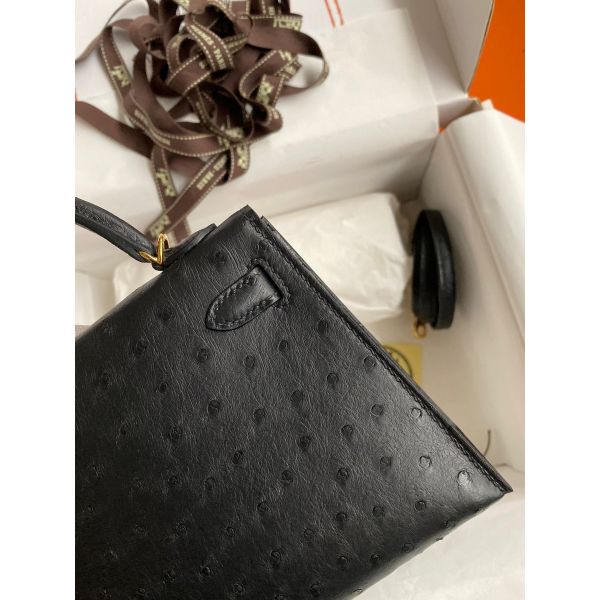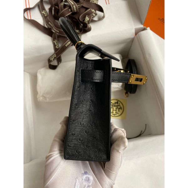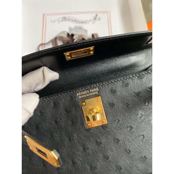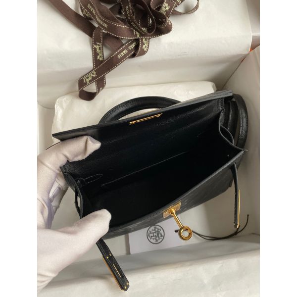 Hermes Kelly Mini II Sellier Handmade Bag In Black Ostrich Leather