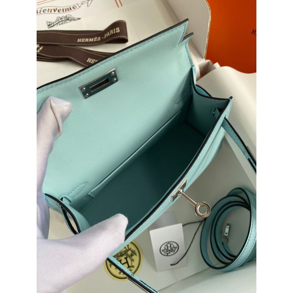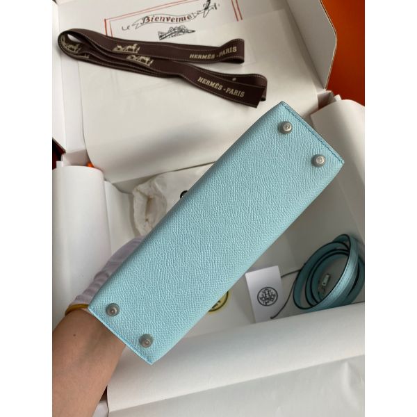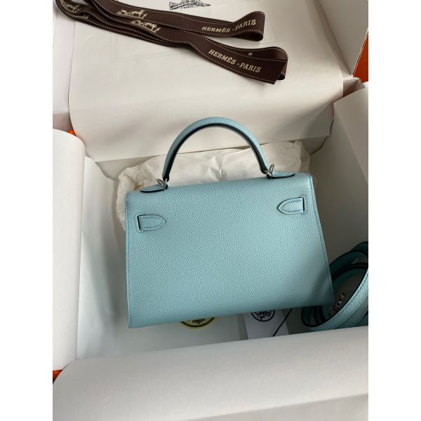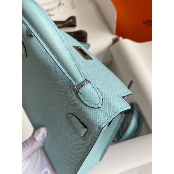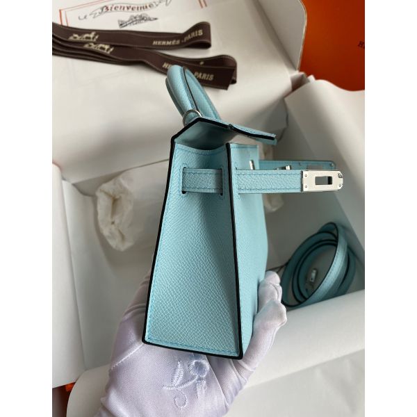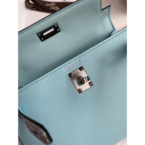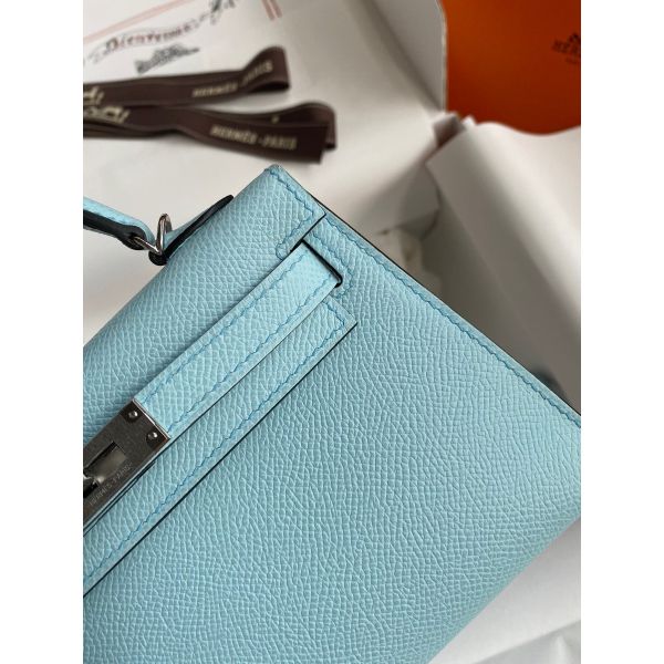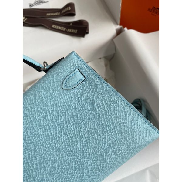 Hermes Kelly Mini II Sellier Handmade Bag In Blue Zephyr Epsom Calfskin