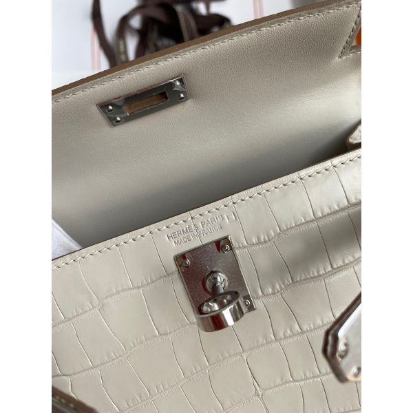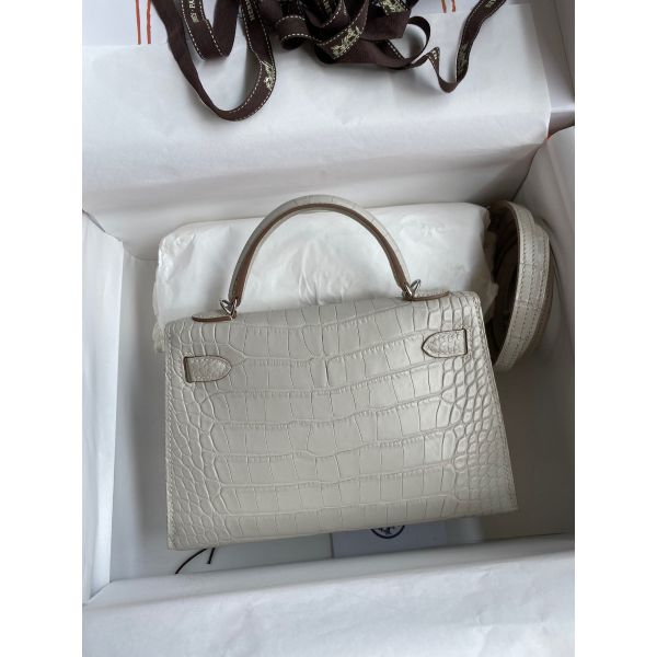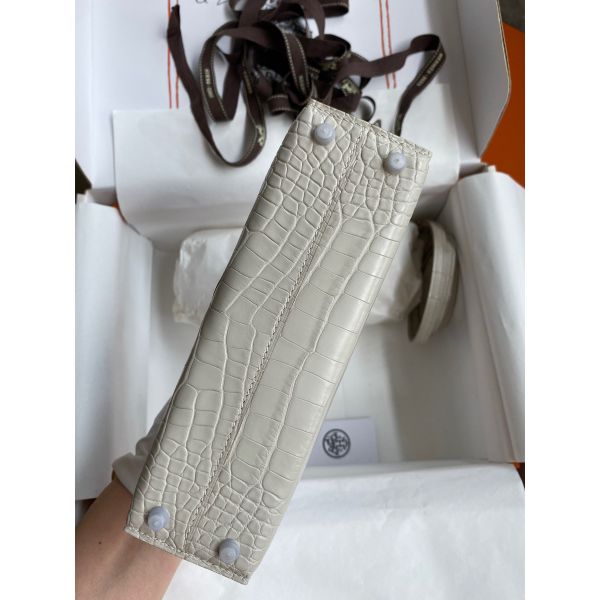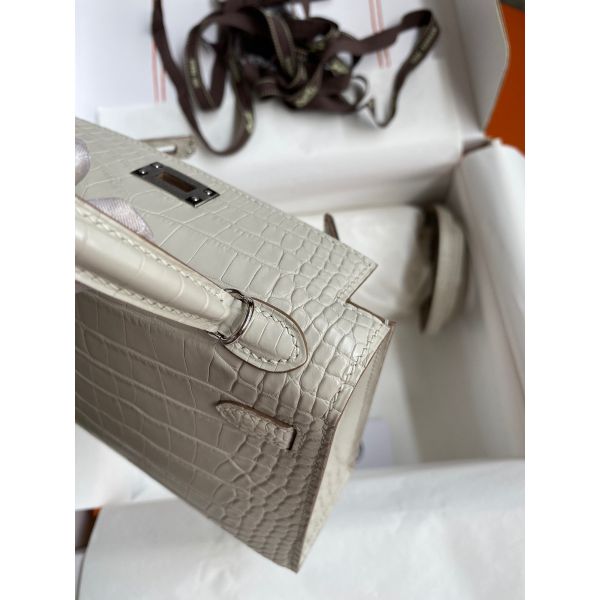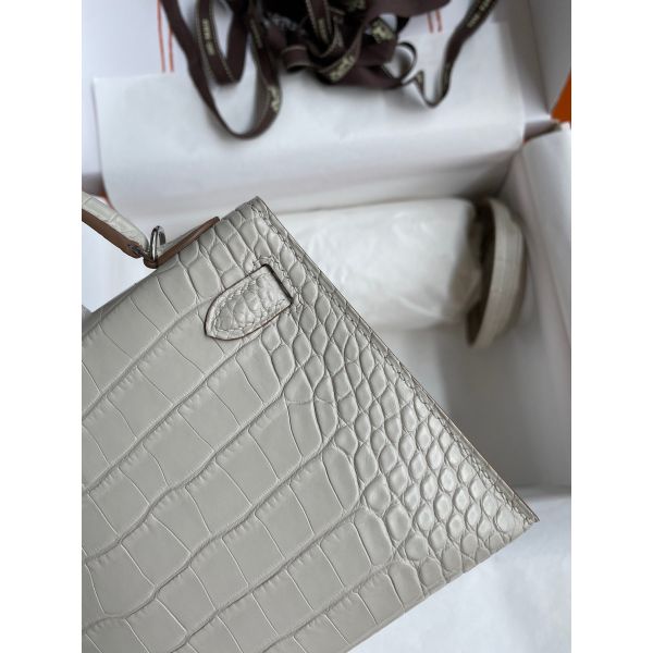 Hermes Kelly Mini II Sellier Handmade Bag In Grey Matte Alligator Leather