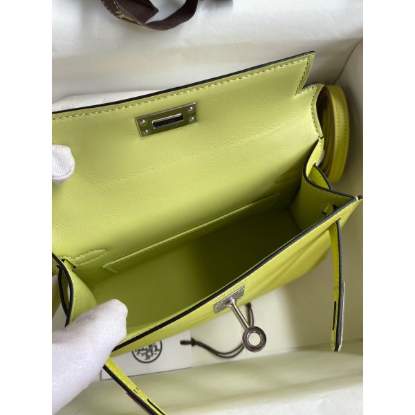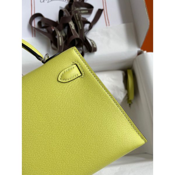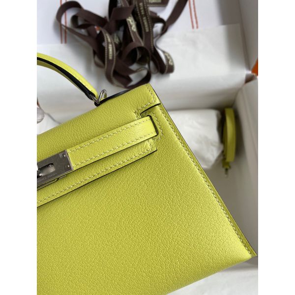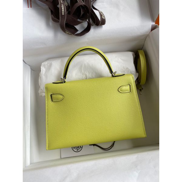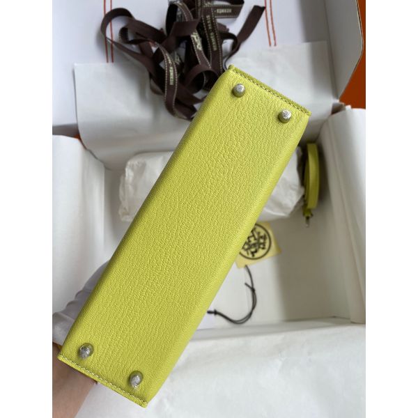 Hermes Kelly Mini II Sellier Handmade Bag In Jaune Bourgeon Chevre Mysore Leather