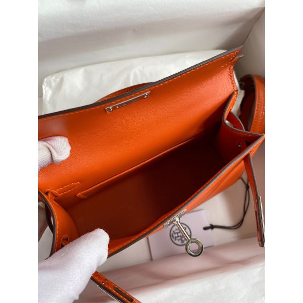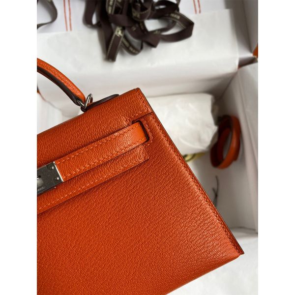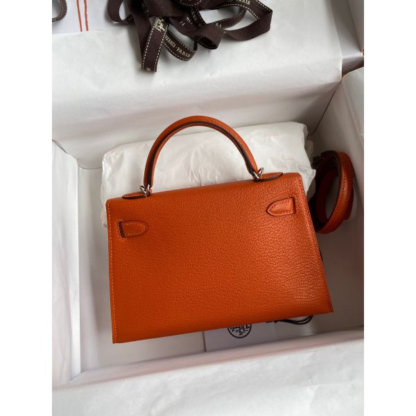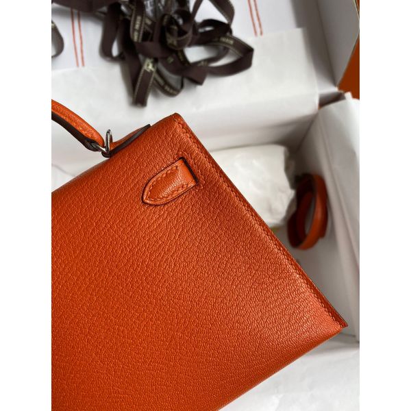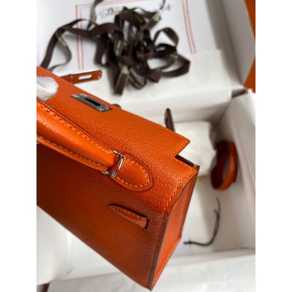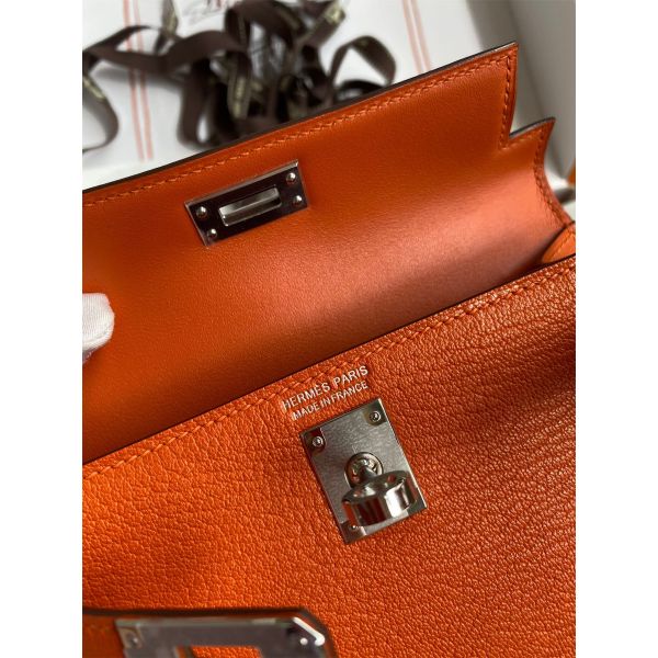 Hermes Kelly Mini II Sellier Handmade Bag In Orange Chevre Mysore Leather