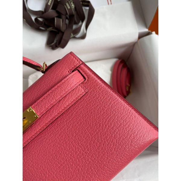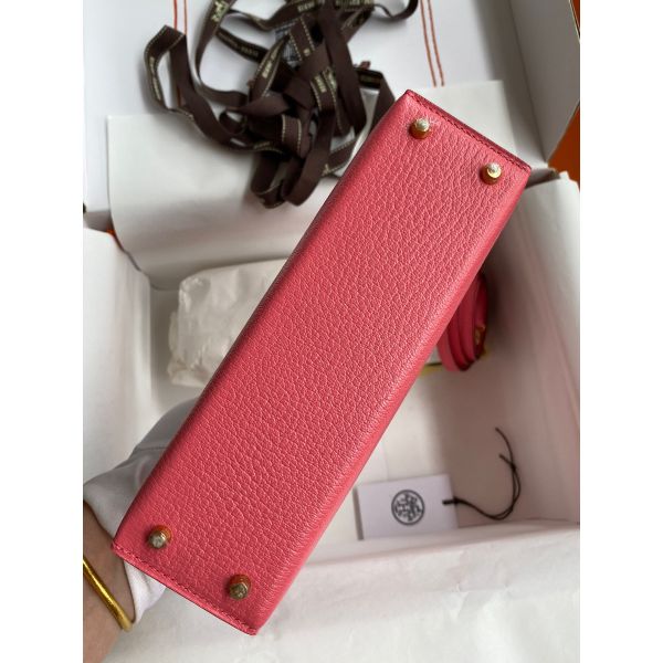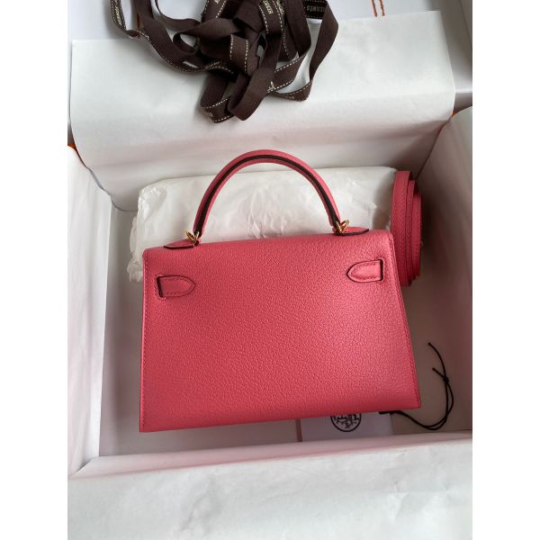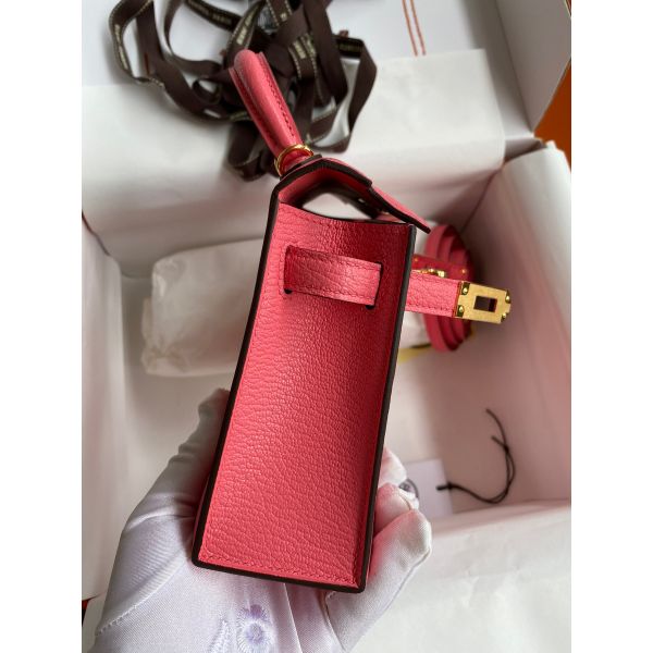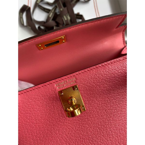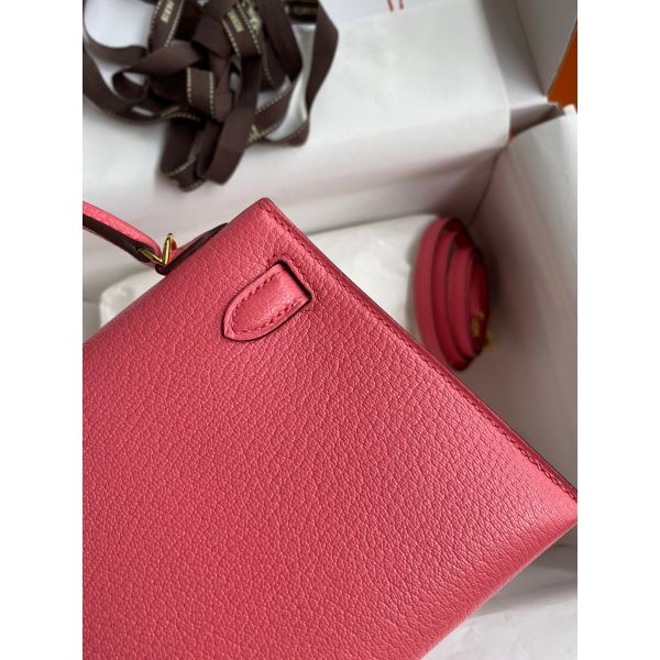Hermes Kelly Mini II Sellier Handmade Bag In Rose Lipstick Chevre Mysore Leather