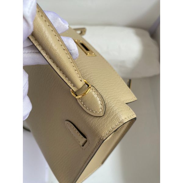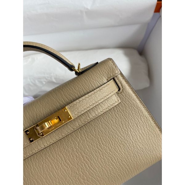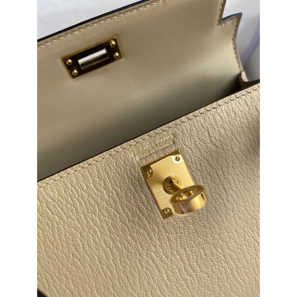 Hermes Kelly Mini II Sellier Handmade Bag In Trench Chevre Mysore Leather