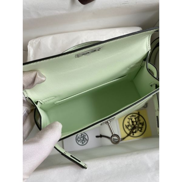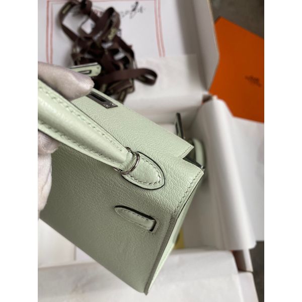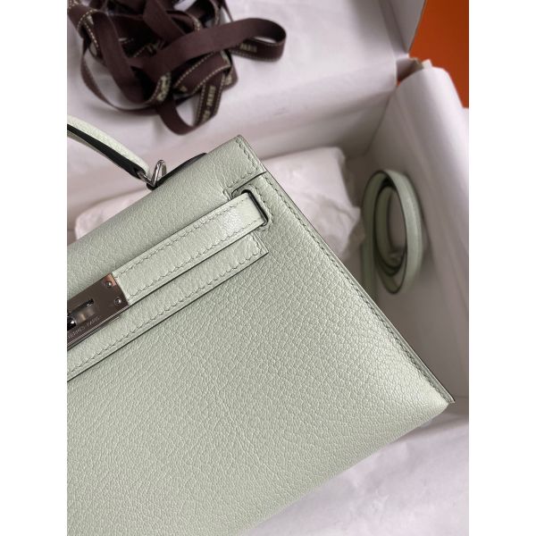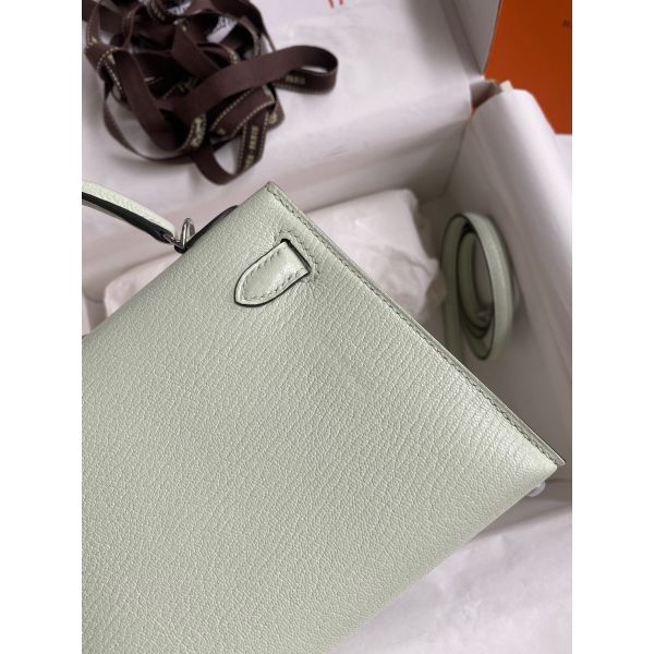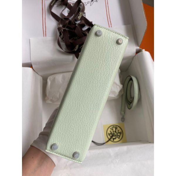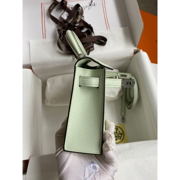 Hermes Kelly Mini II Sellier Handmade Bag In Vert Fizz Chevre Mysore Leather