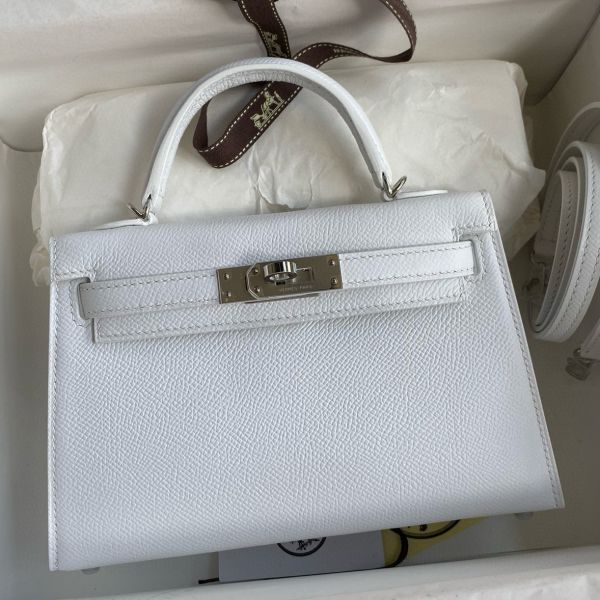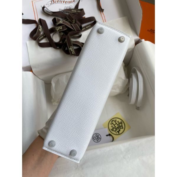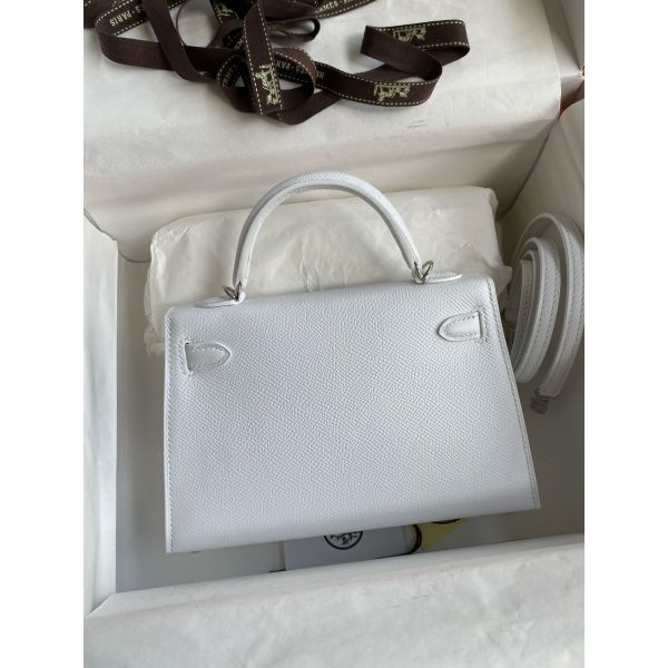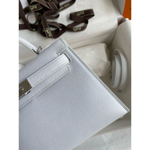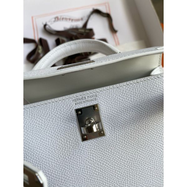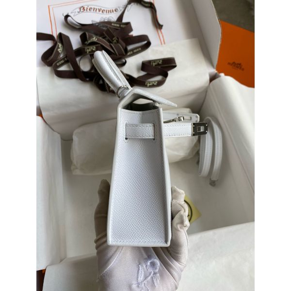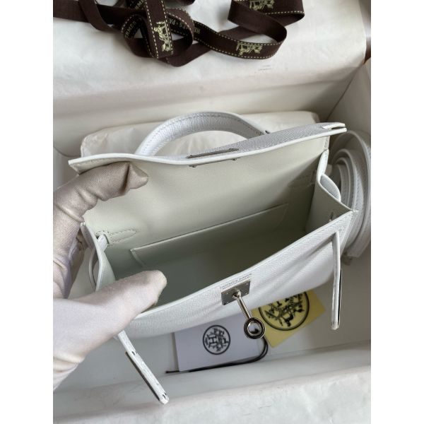 Hermes Kelly Mini II Sellier Handmade Bag In White Epsom Calfskin