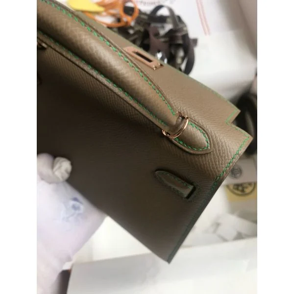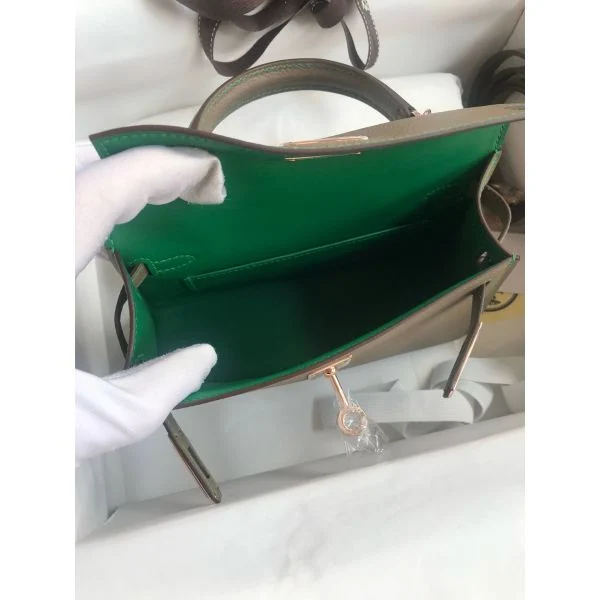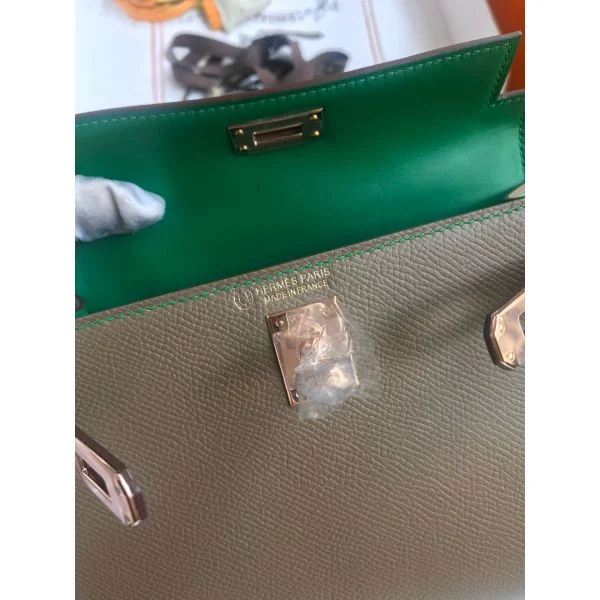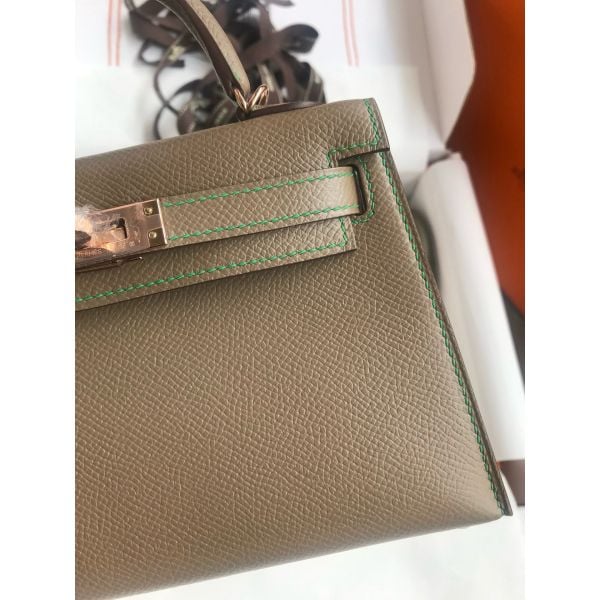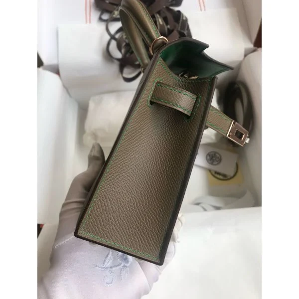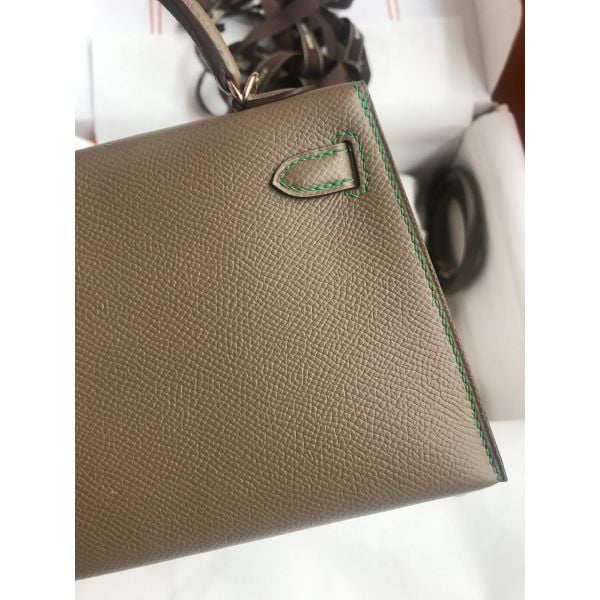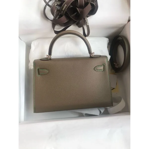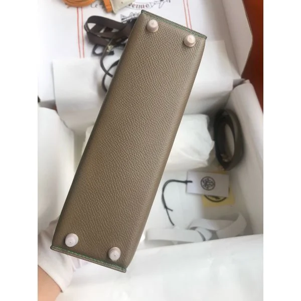 Hermes Kelly Mini II Sellier Verso Handmade Bag in Taupe and Bamboo Epsom Calfskin