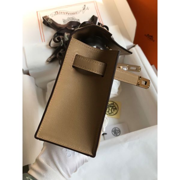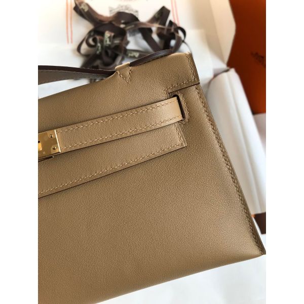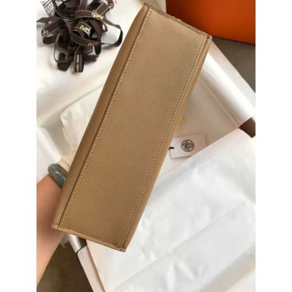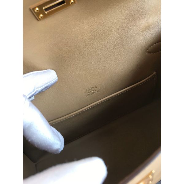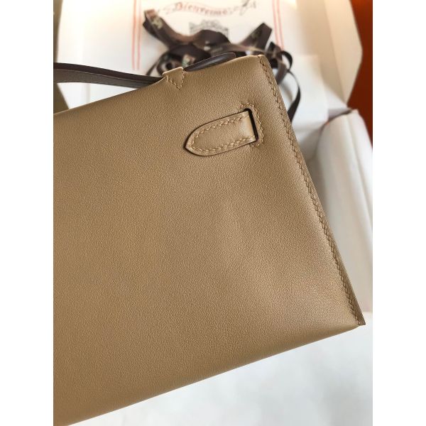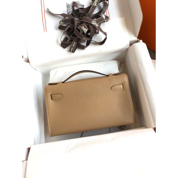 Hermes Kelly Pochette Handmade Bag In Biscuit Swift Calfskin