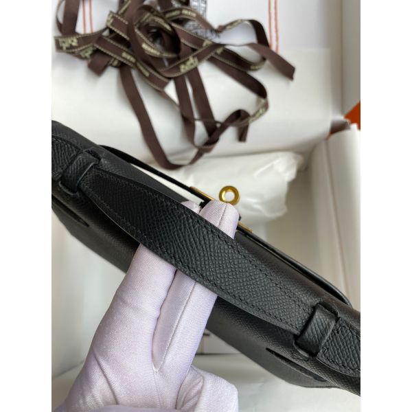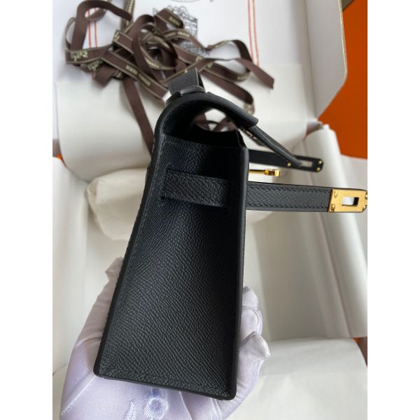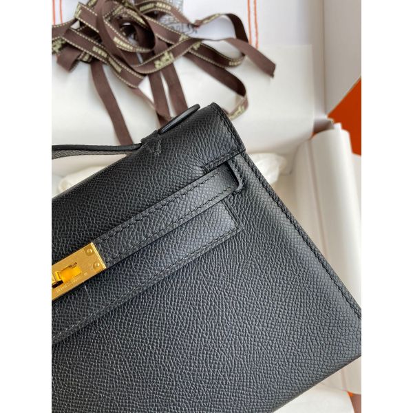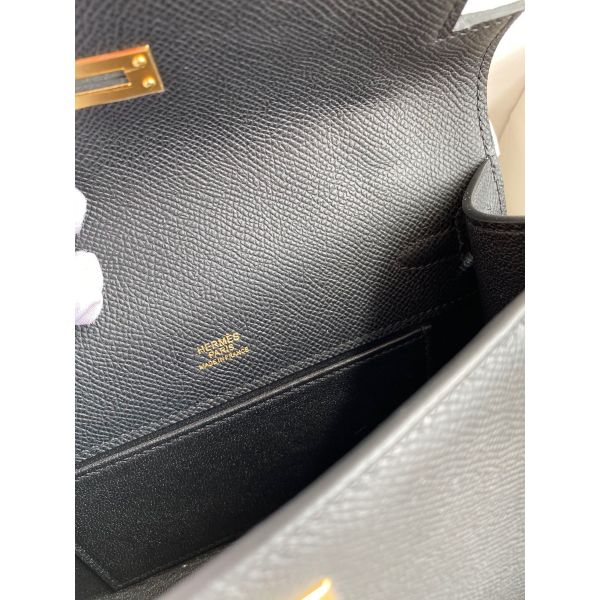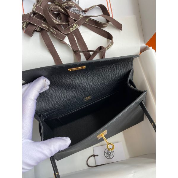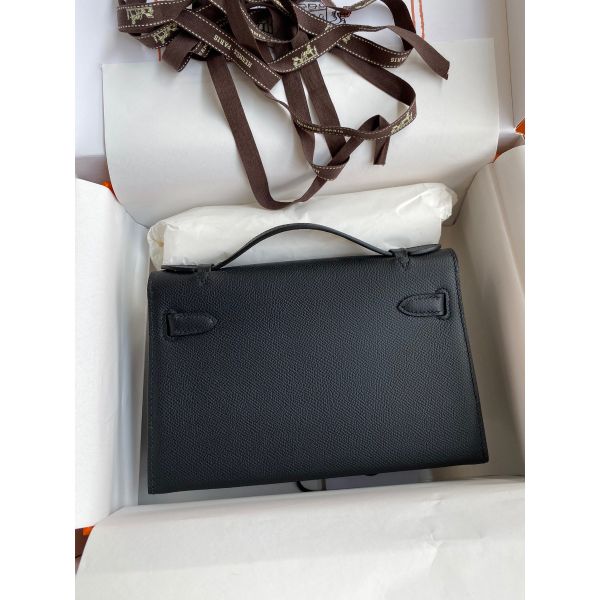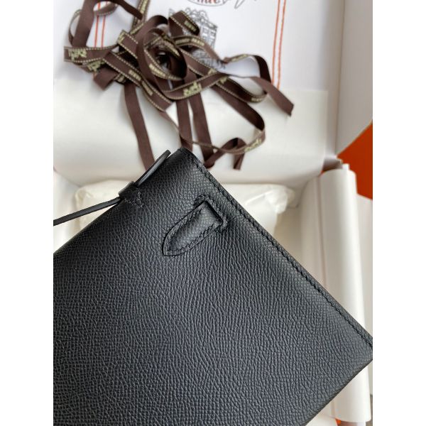 Hermes Kelly Pochette Handmade Bag In Black Epsom Calfskin