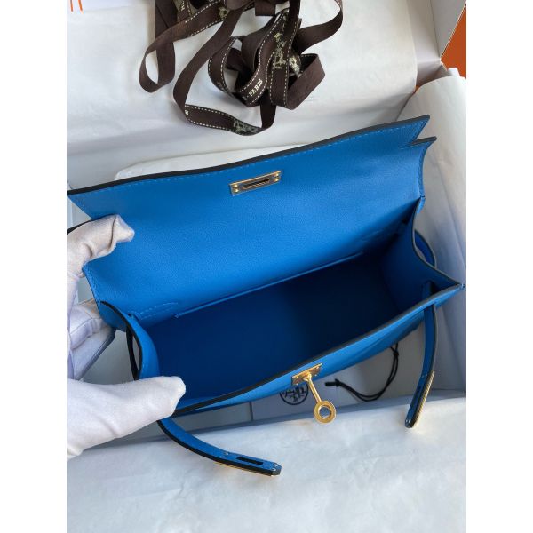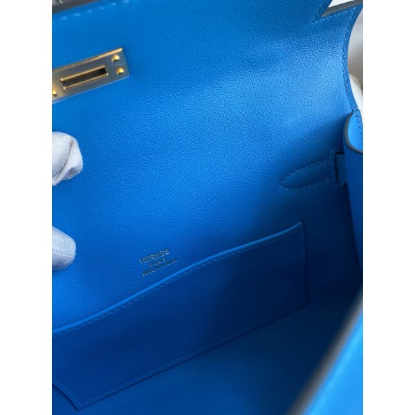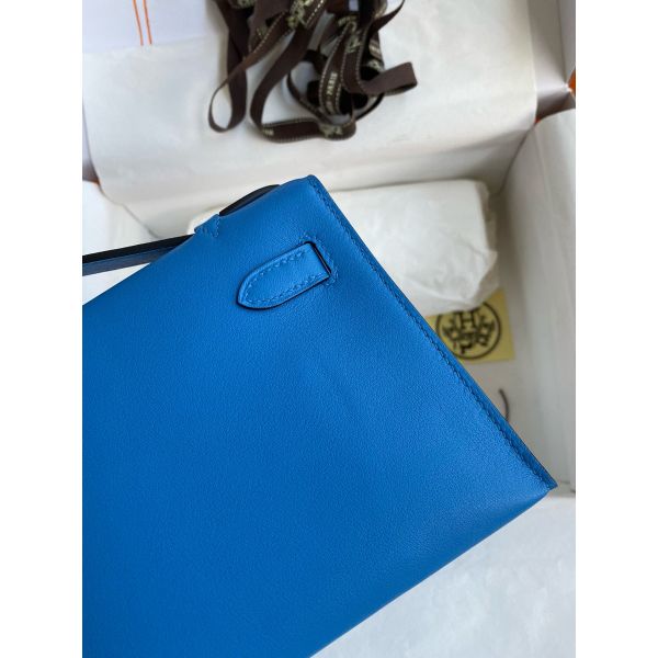 Hermes Kelly Pochette Handmade Bag In Blue Zanzibar Swift Calfskin