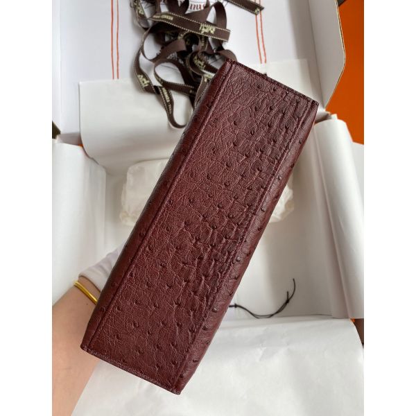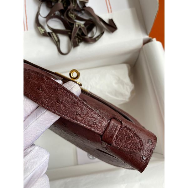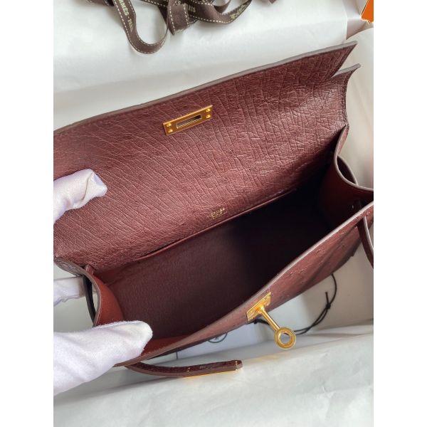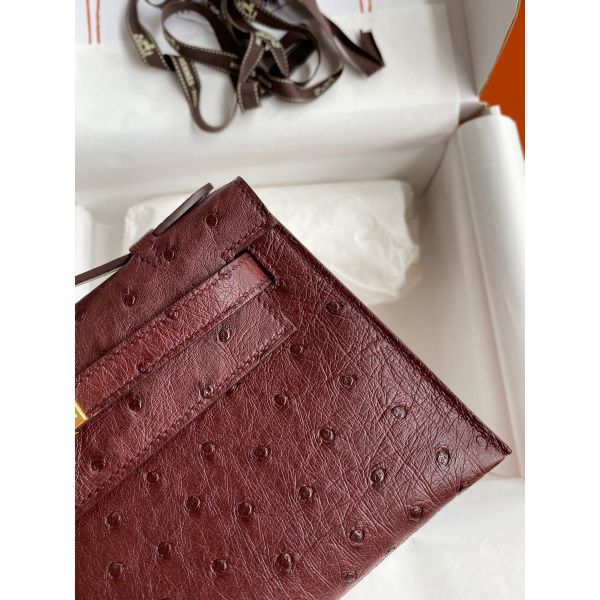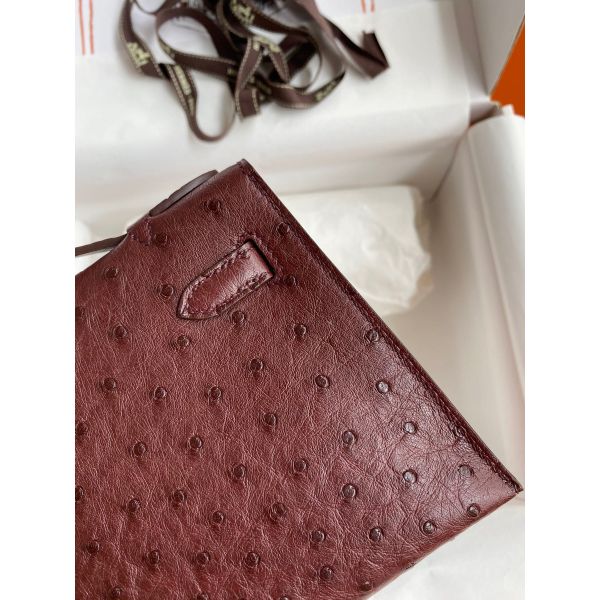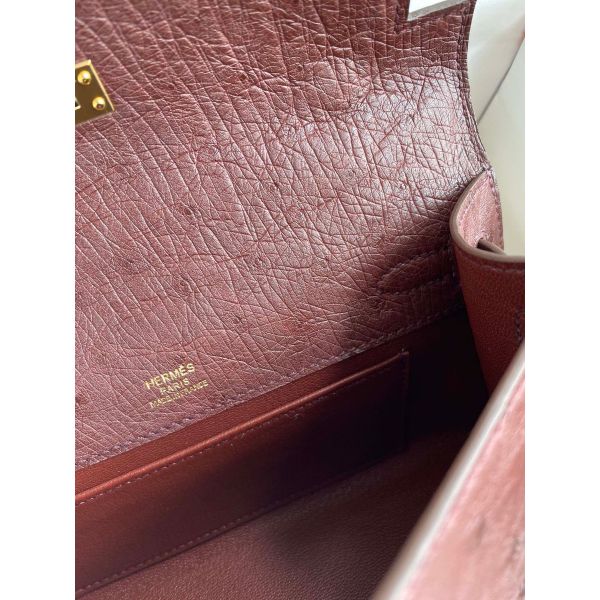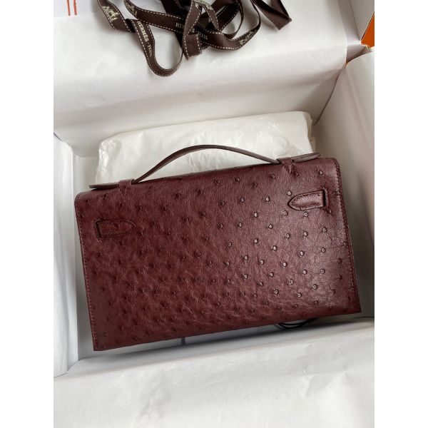 Hermes Kelly Pochette Handmade Bag In Bordeaux Ostrich Leather