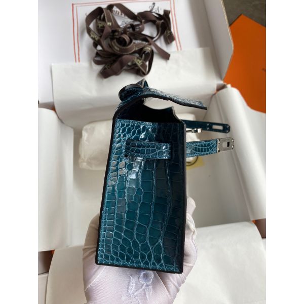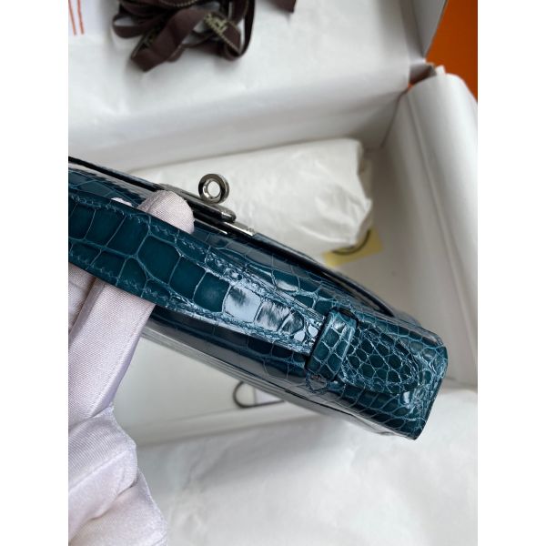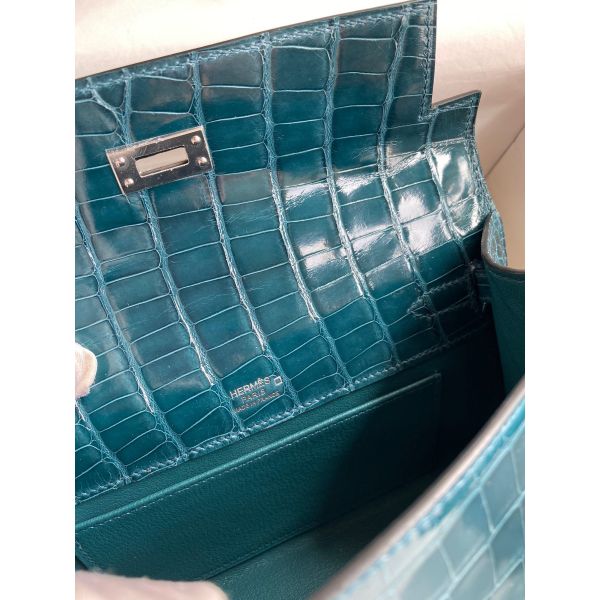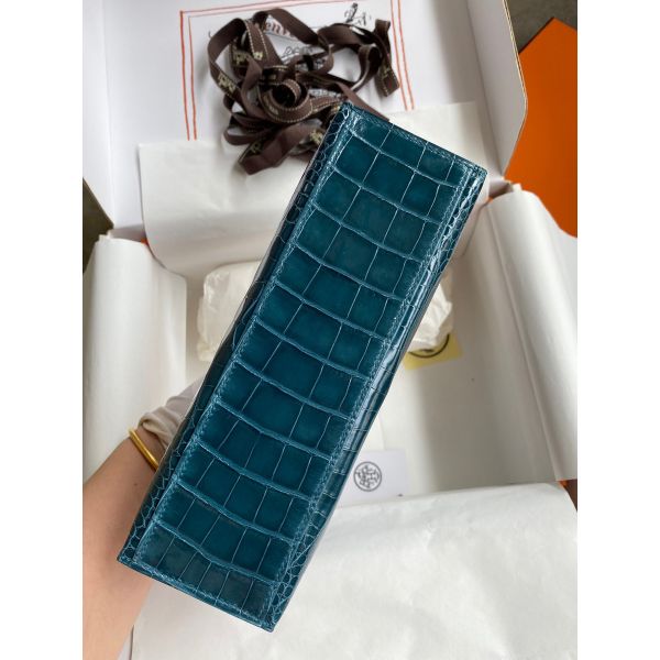 Hermes Kelly Pochette Handmade Bag In Colvert Shiny Alligator Leather