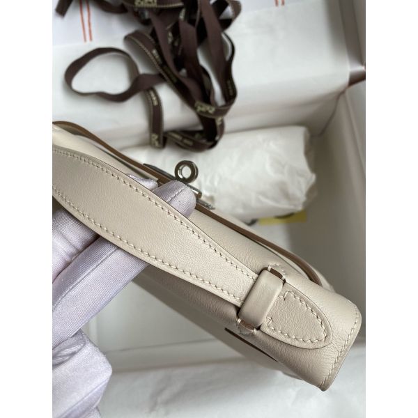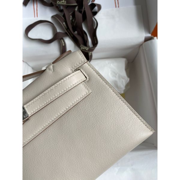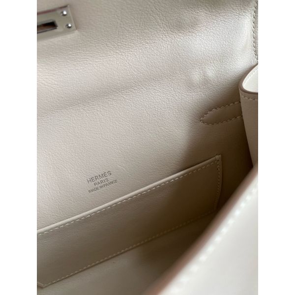 Hermes Kelly Pochette Handmade Bag In Craie Swift Calfskin