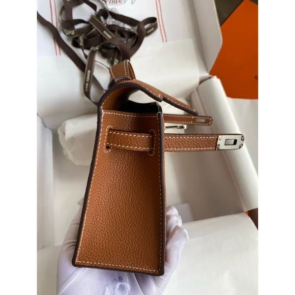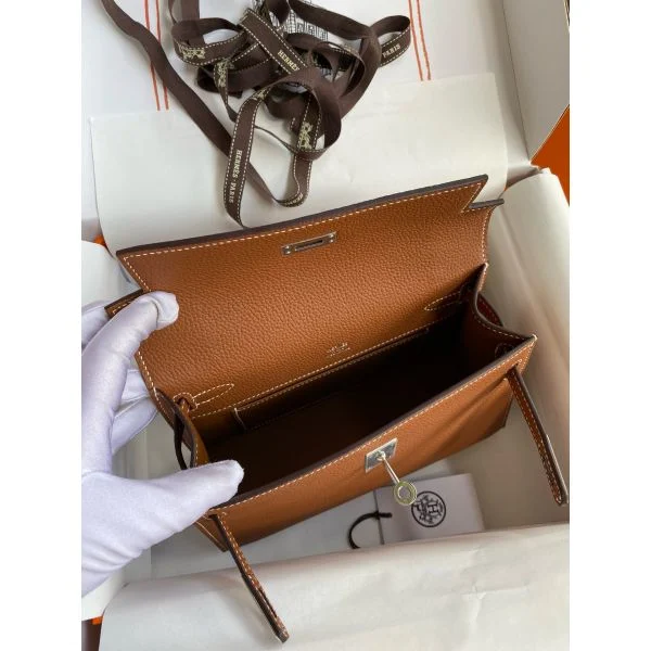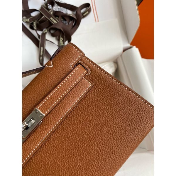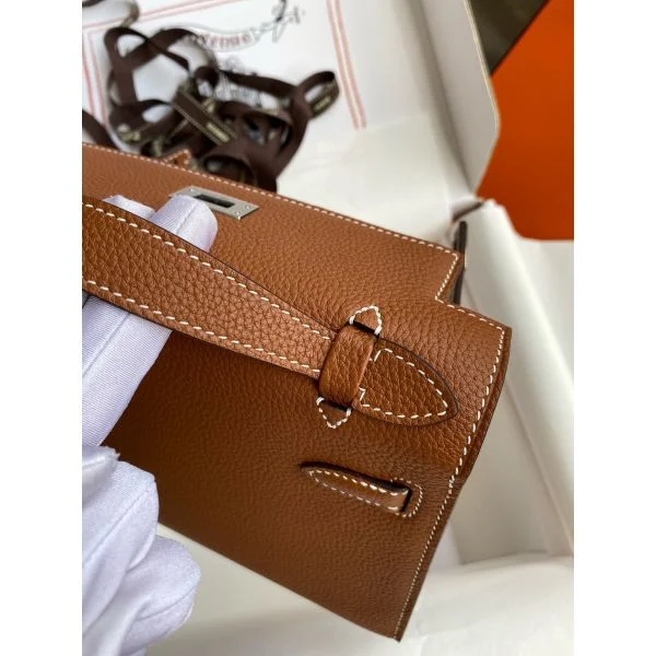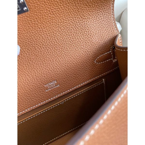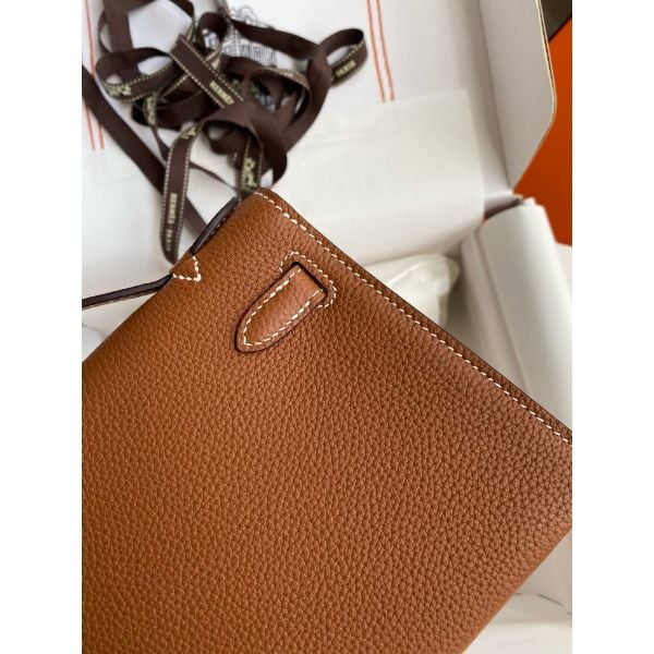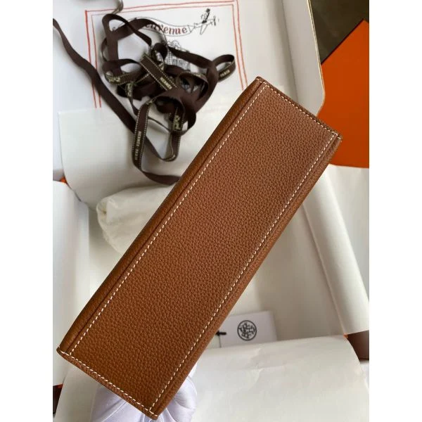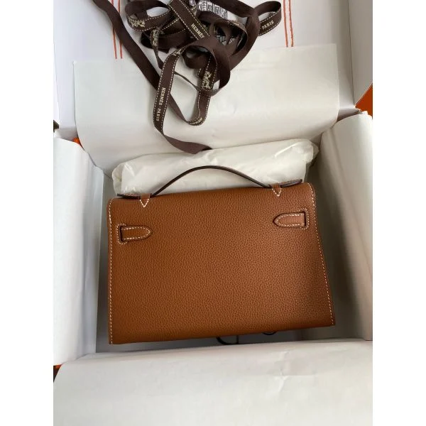 The Kelly Pochette was Jean-Paul Gaultier’s clutch interpretation of the classic Kelly bag. Introduced on the fall runway of his first collection for the House in 2004, the Kelly Pochette was an instant hit. This handbag is made from taurillon Clemence leather, which named in tribute to the daughter of the designer who introduced it into the collections. The Kelly pochette is a true clutch with neither feet nor shoulder strap. It is remarkably roomy, holding more than the Kelly cut or the mini Kelly.