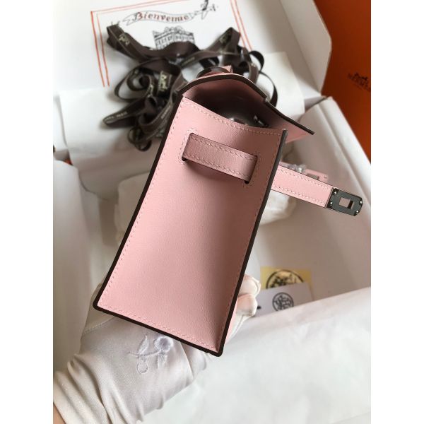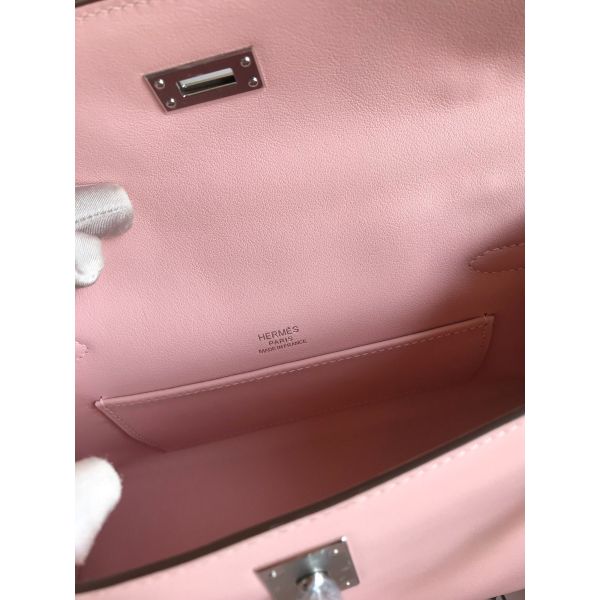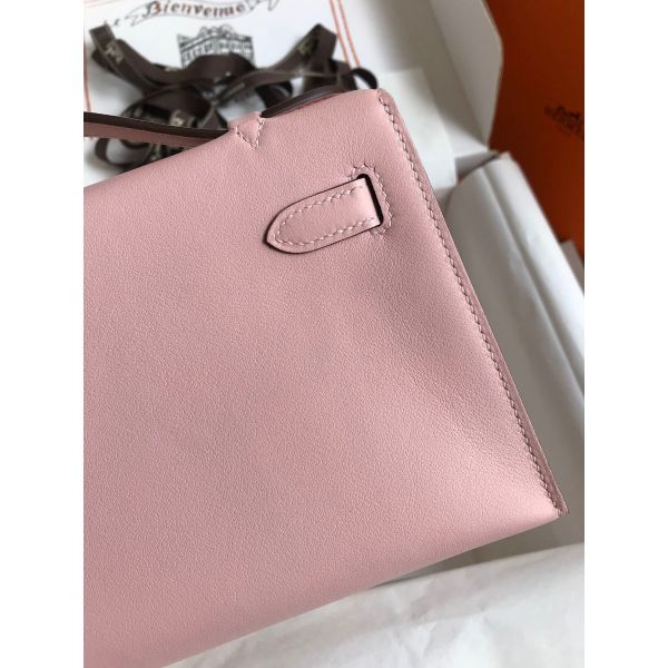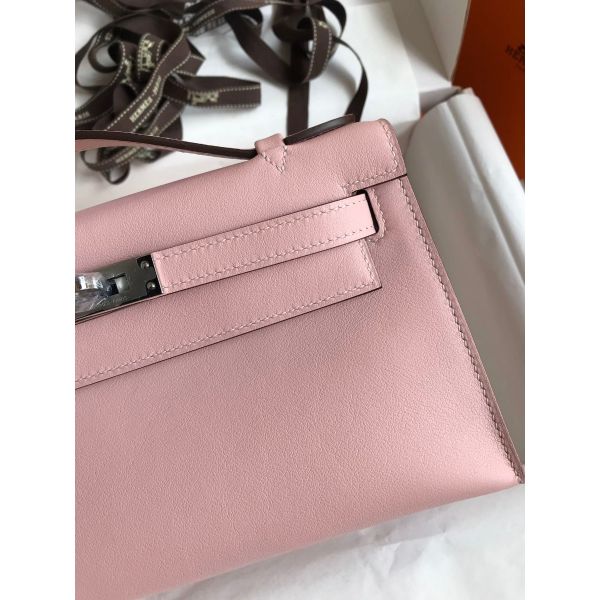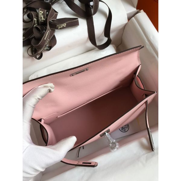 Hermes Kelly Pochette Handmade Bag In Rose Sakura Swift Calfskin