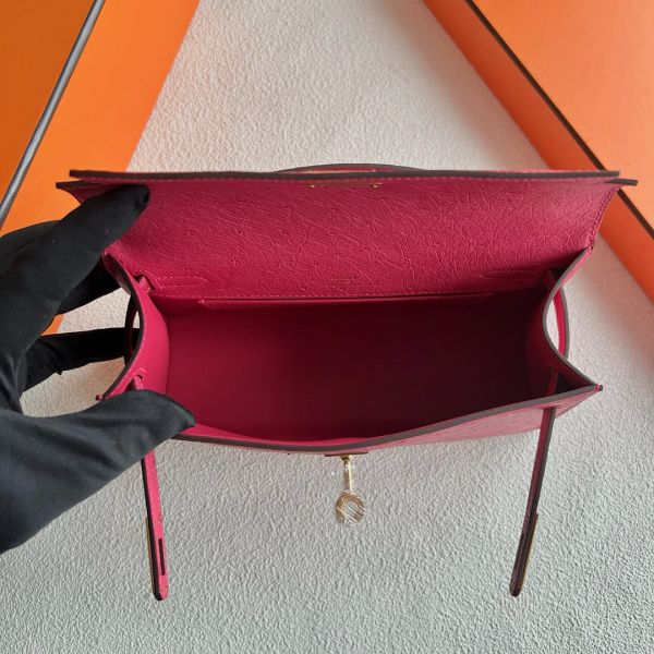 Hermes Kelly Pochette Handmade Bag in Rose Tyrien Ostrich Leather