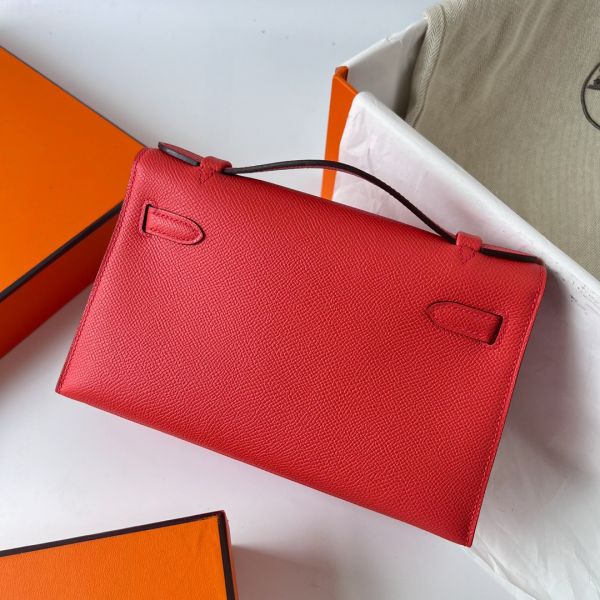 Hermes Kelly Pochette Handmade Bag In Rouge Piment Epsom Calfskin