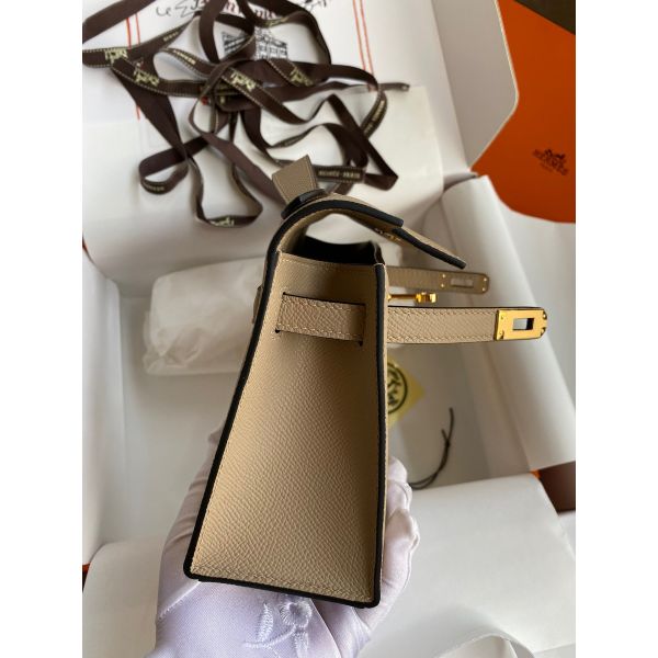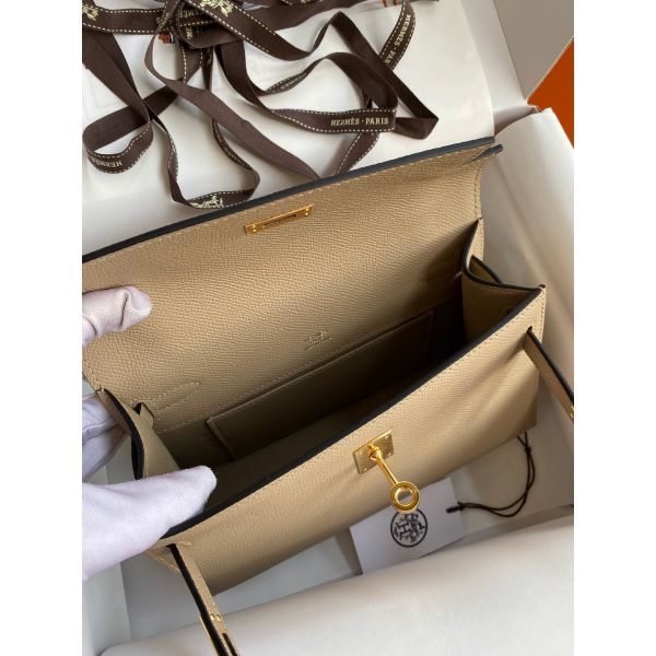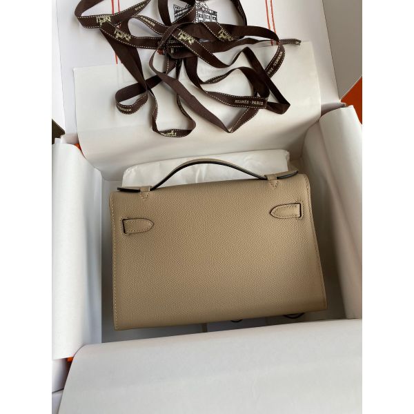Hermes Kelly Pochette Handmade Bag In Trench Epsom Calfskin