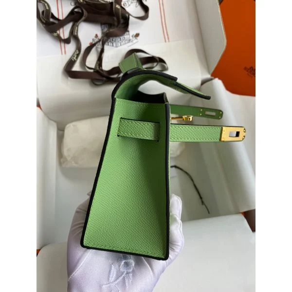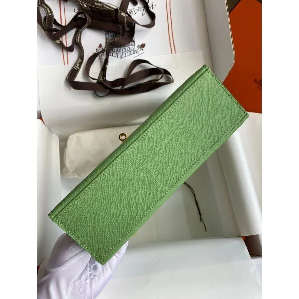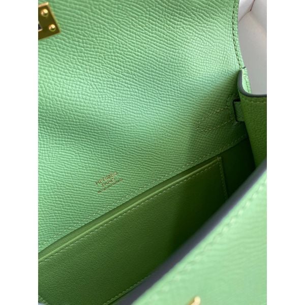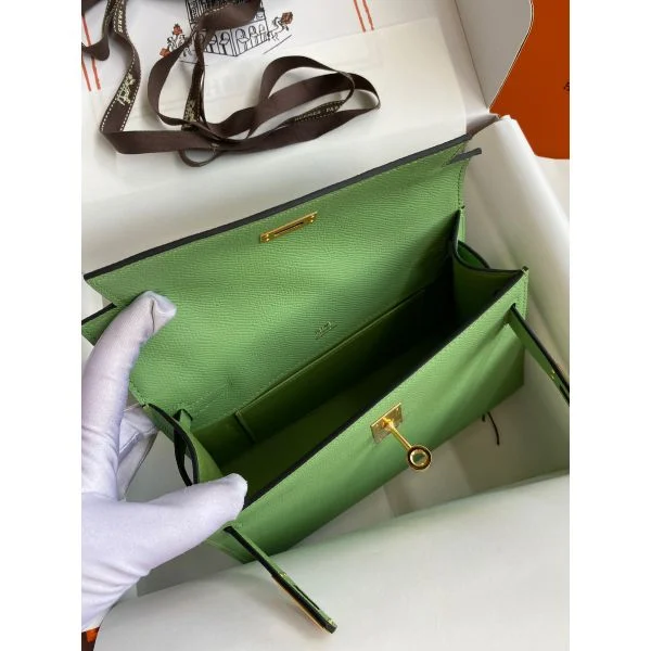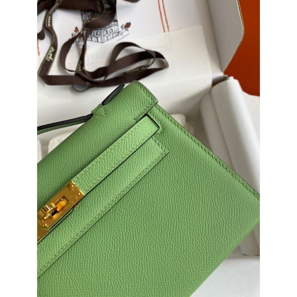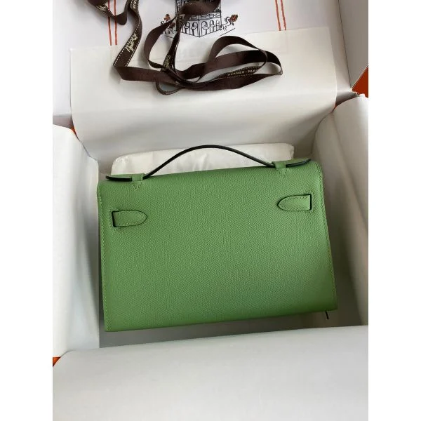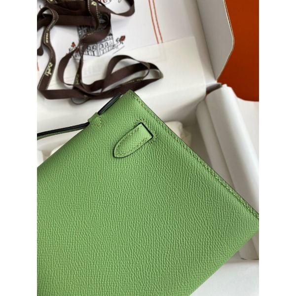 Hermes Kelly Pochette Handmade Bag In Vert Criquet Epsom Calfskin