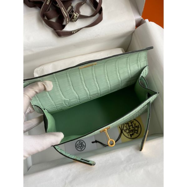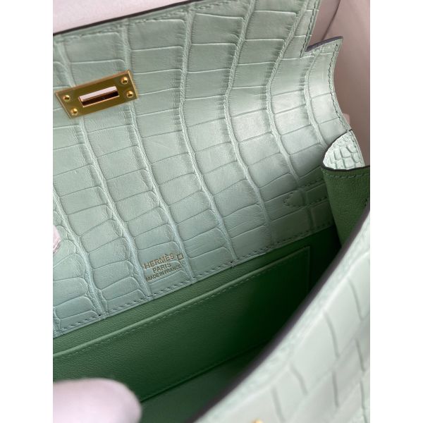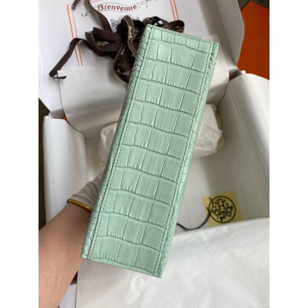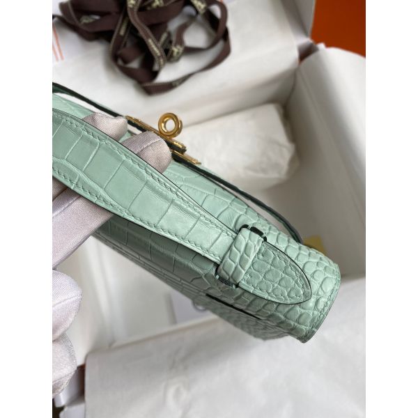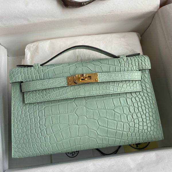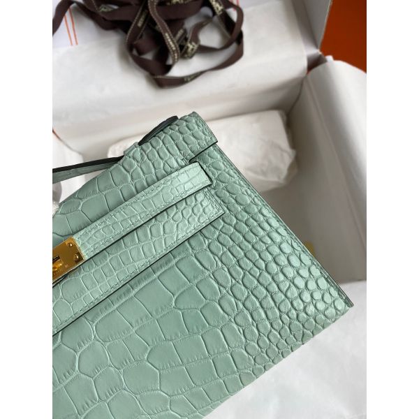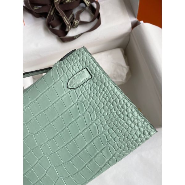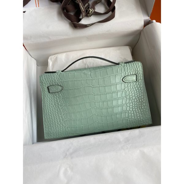 Hermes Kelly Pochette Handmade Bag In Vert D’eau Matte Alligator Leather