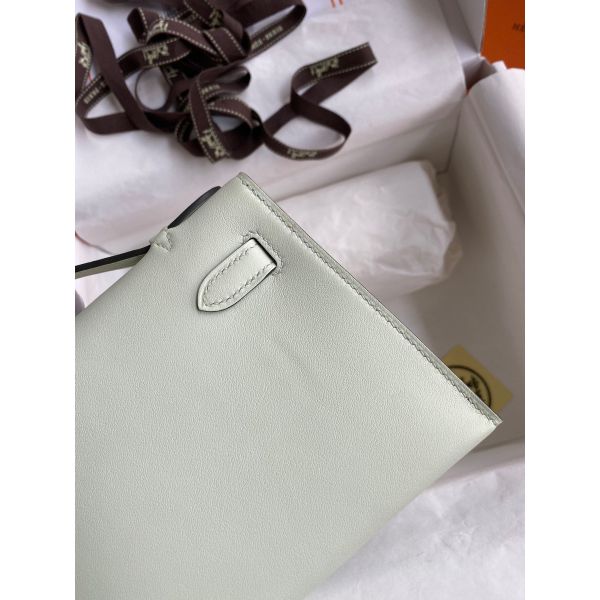 Hermes Kelly Pochette Handmade Bag In Vert Fizz Swift Calfskin