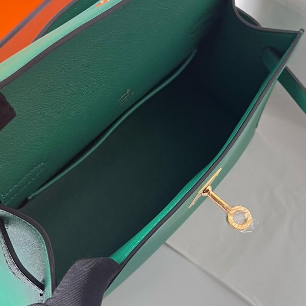 Hermes Kelly Pochette Handmade Bag In Vert Vertigo Swift Calfskin