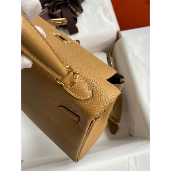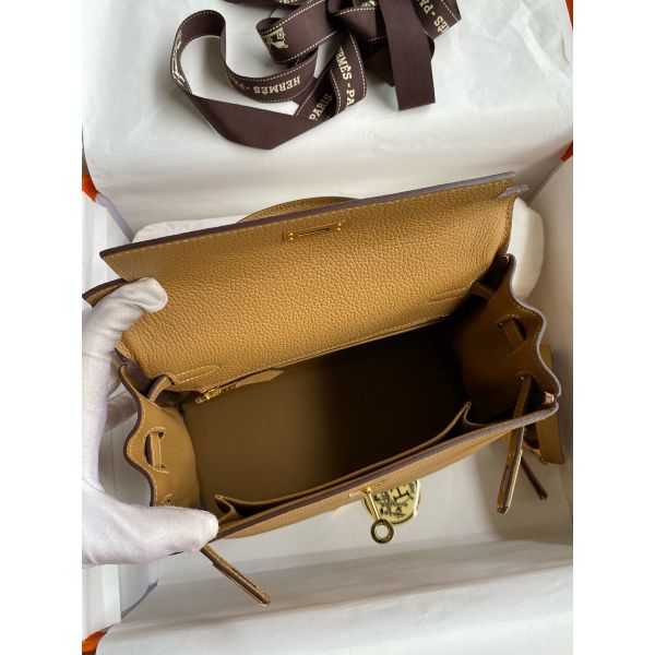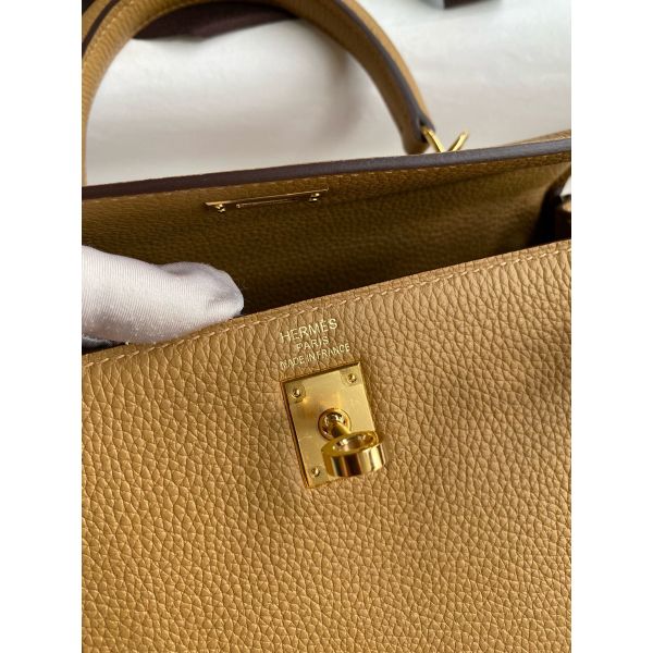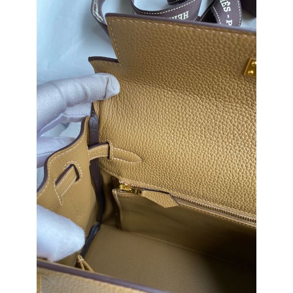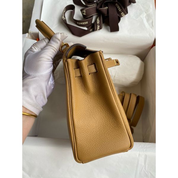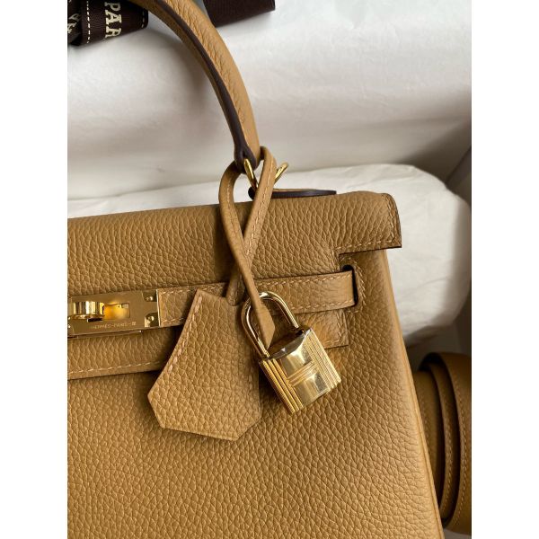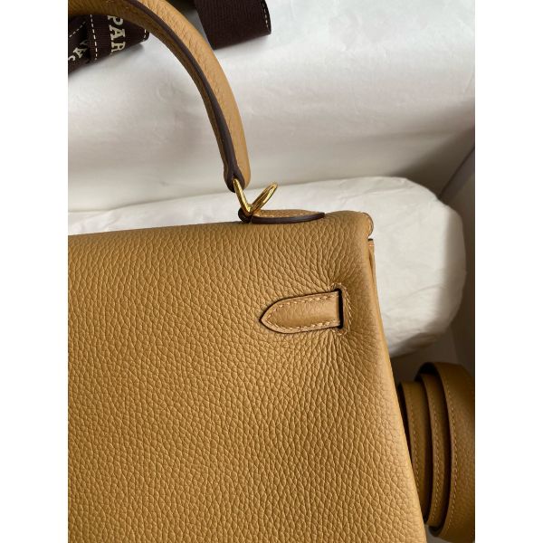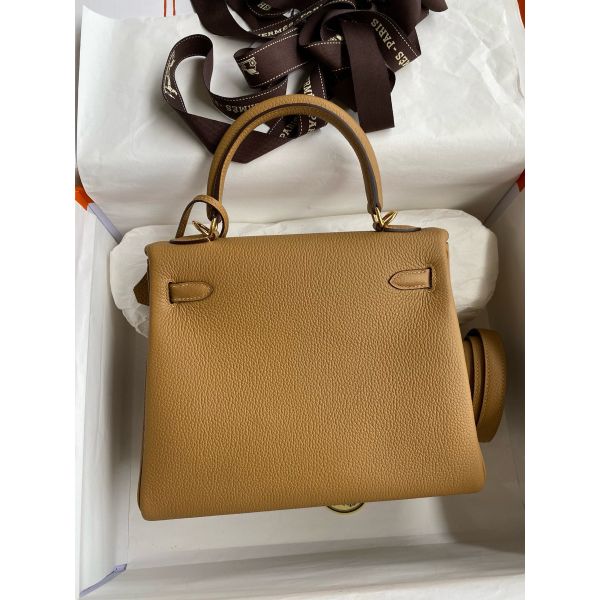 Hermes Kelly Retourne 25 Handmade Bag In Biscuit Clemence Leather