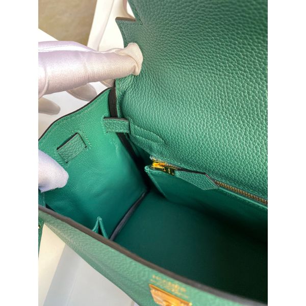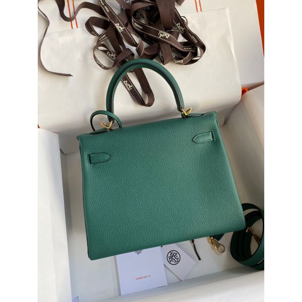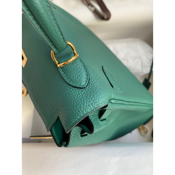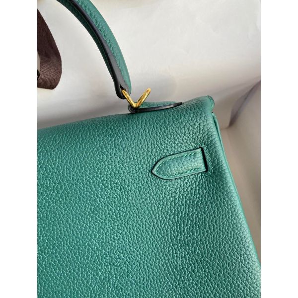 Hermes Kelly Retourne 25 Handmade Bag In Blue Paon Clemence Leather