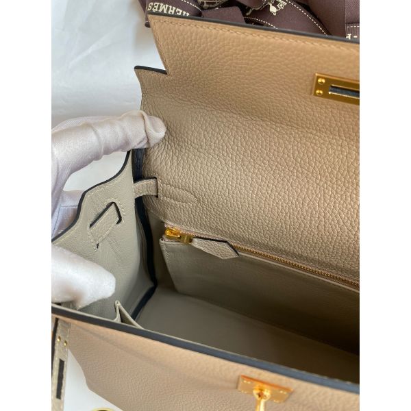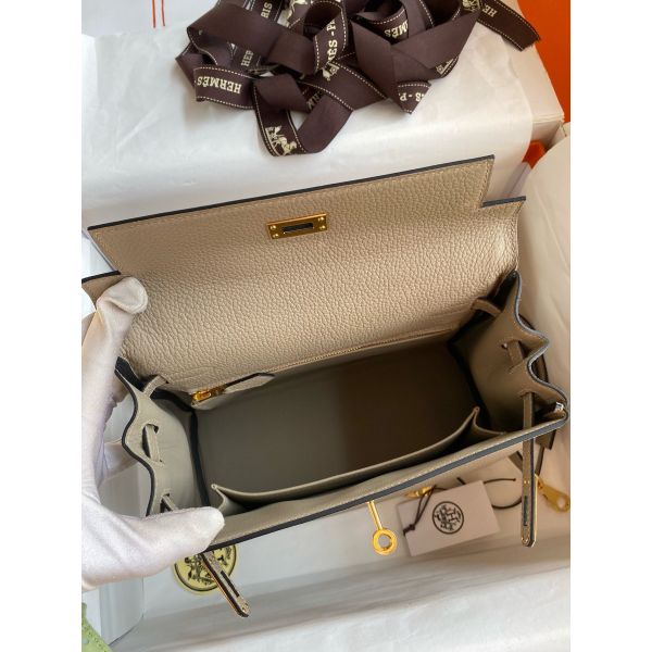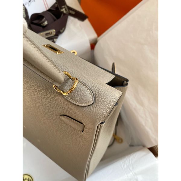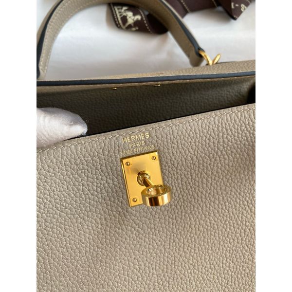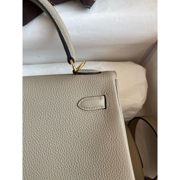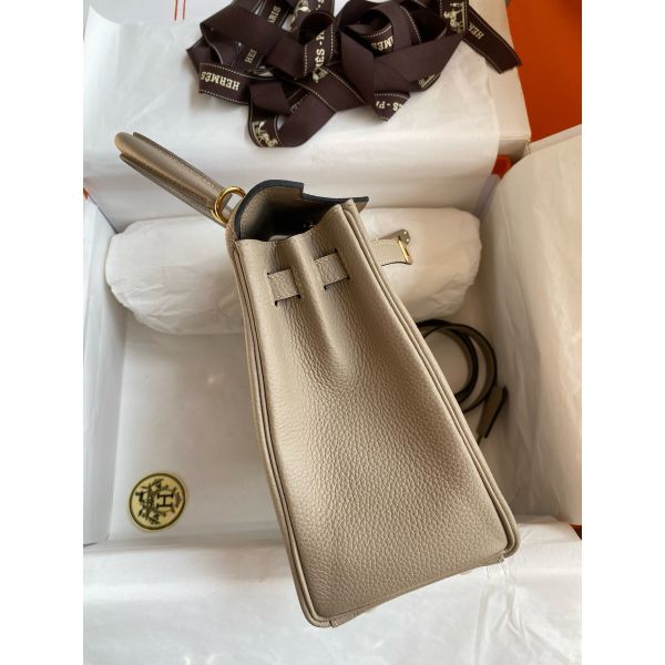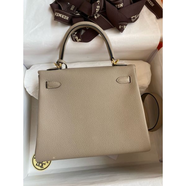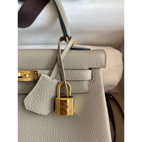 Hermes Kelly Retourne 25 Handmade Bag In Gris Tourterelle Clemence Leather
