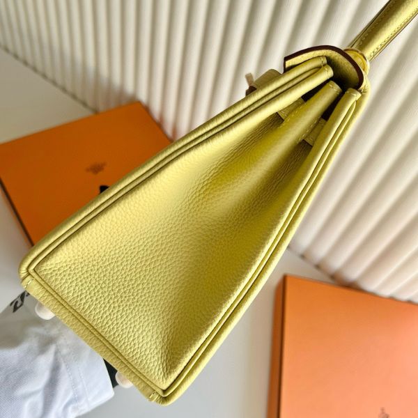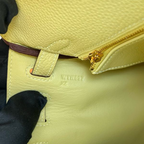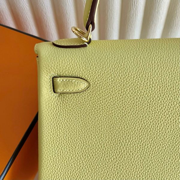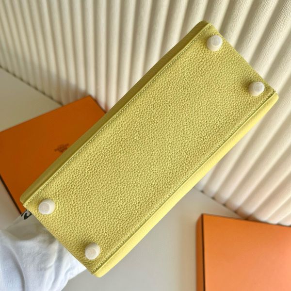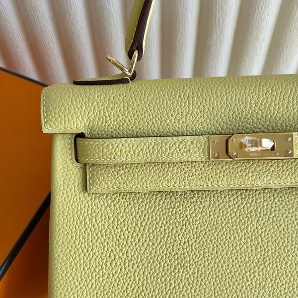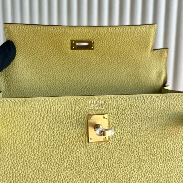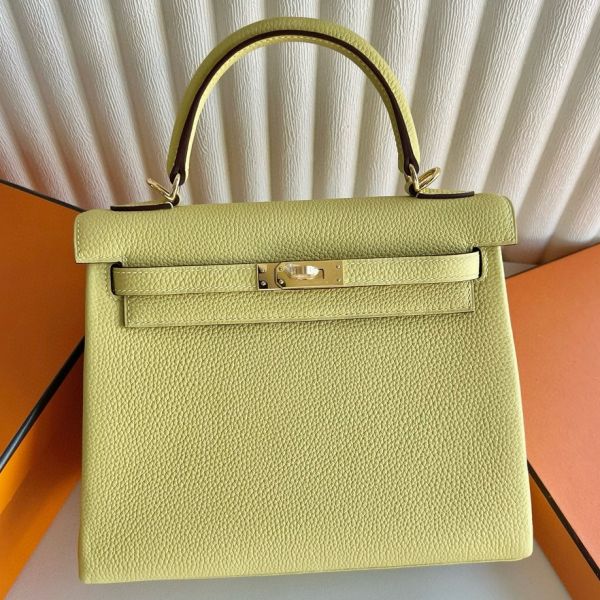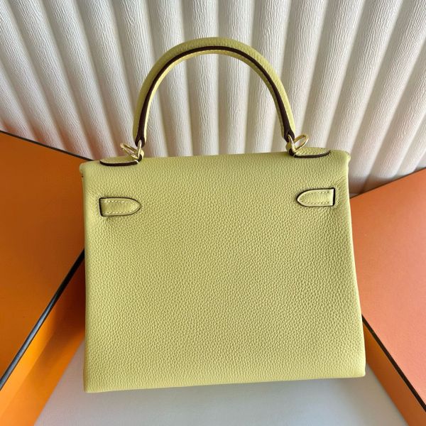 Hermes Kelly Retourne 25 Handmade Bag in Jaune Poussin Clemence Leather
