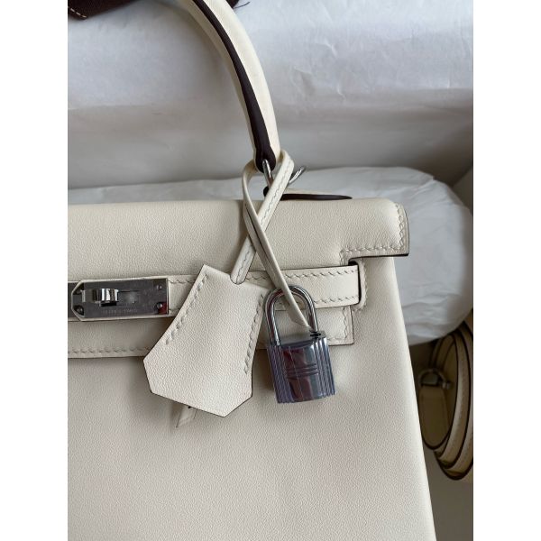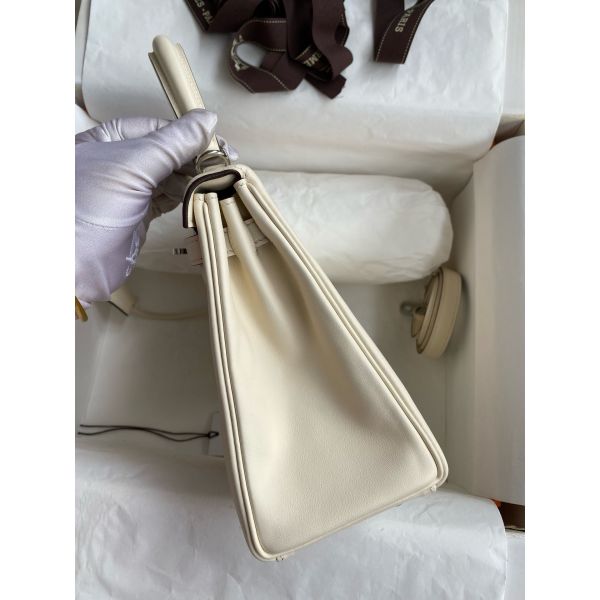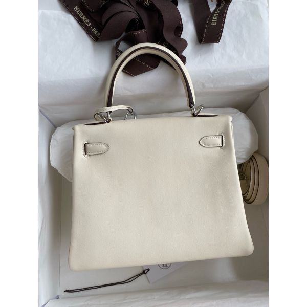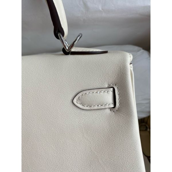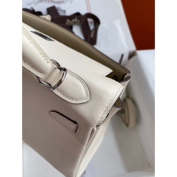 Hermes Kelly Retourne 25 Handmade Bag In Nata Swift Calfskin
