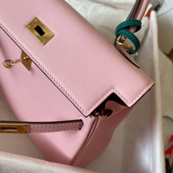 Hermes Kelly Retourne 25 Handmade Bag In Pink Swift Calfskin