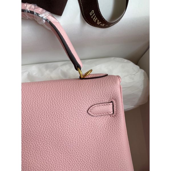 Hermes Kelly Retourne 25 Handmade Bag In Rose Sakura Clemence Leather