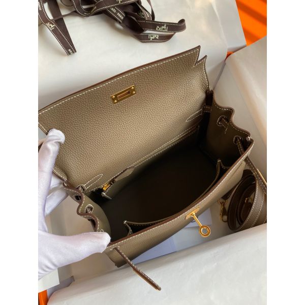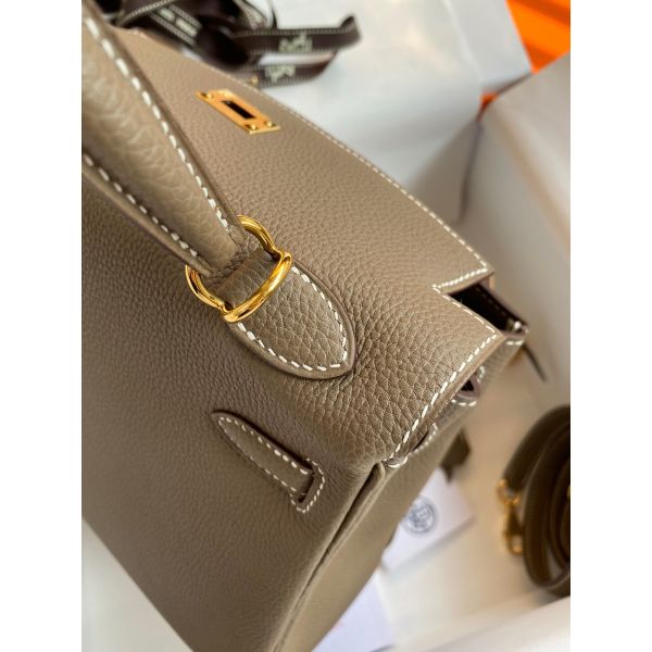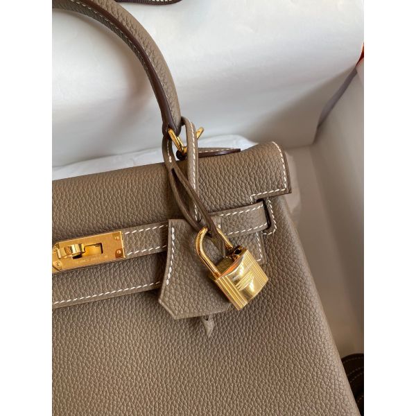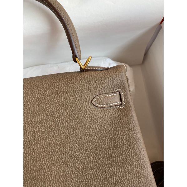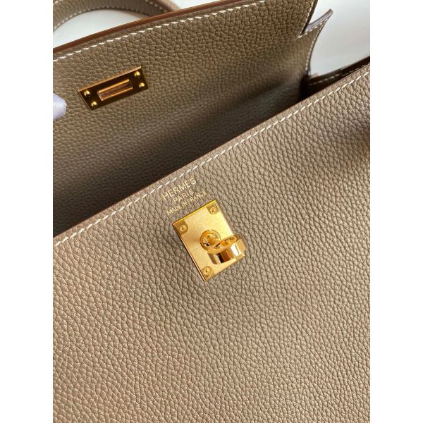 Hermes Kelly Retourne 25 Handmade Bag In Taupe Clemence Leather