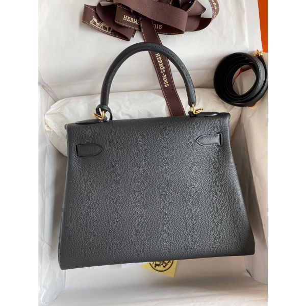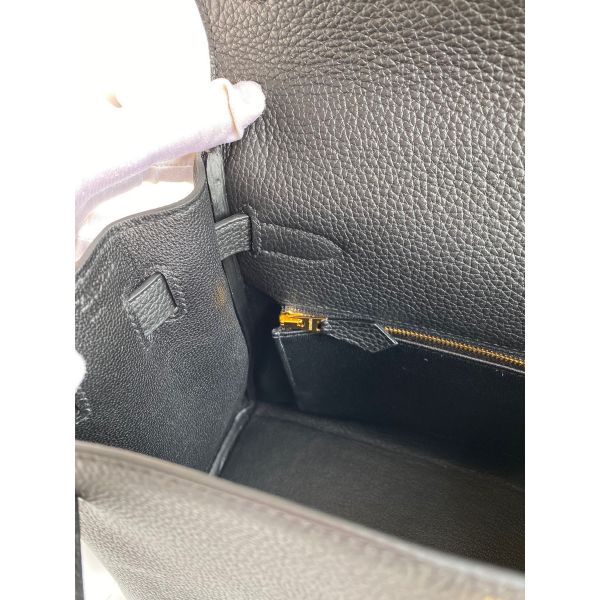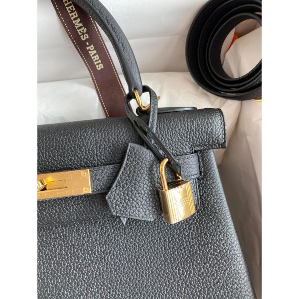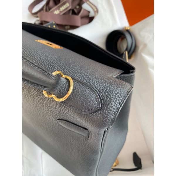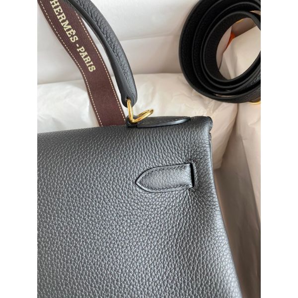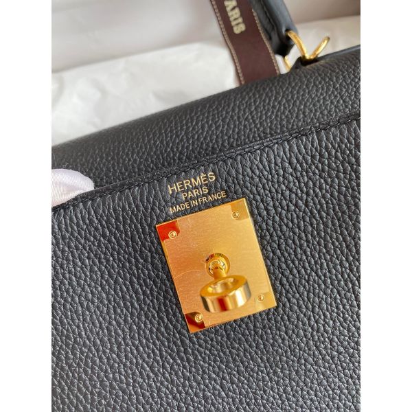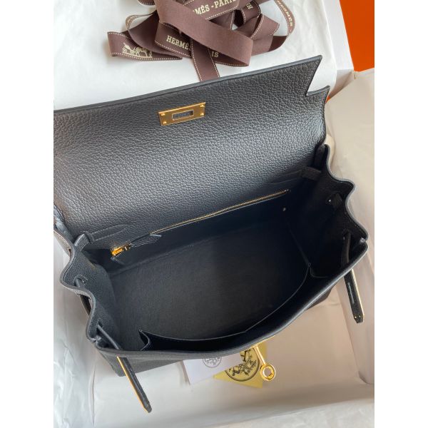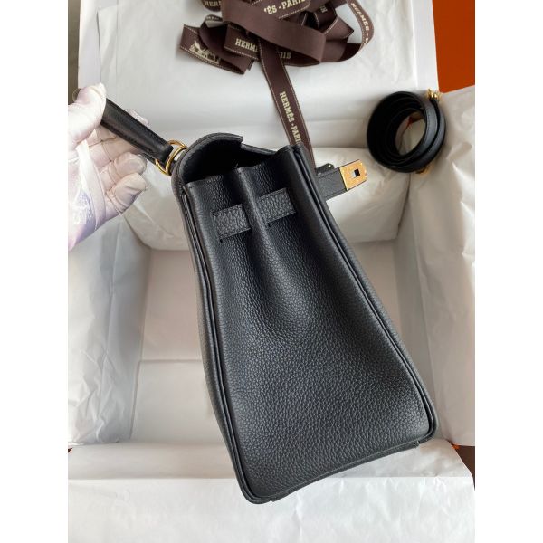Hermes Kelly Retourne 28 Handmade Bag In Black Clemence Leather