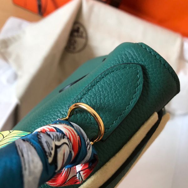 Hermes Kelly Retourne 28 Handmade Bag In Malachite Clemence Leather